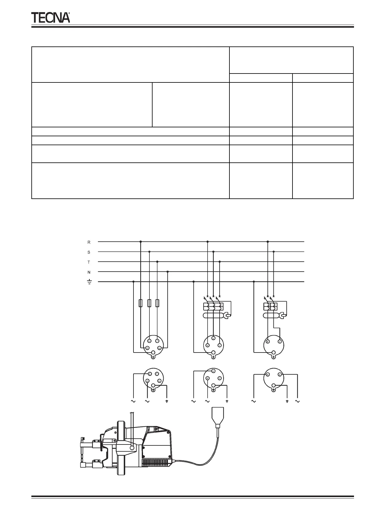 Dimensionamento della linea e dei fusibili - Size of mains cable and fuses required - Section des câbles de l’installation et fusibles - Querschnitt
