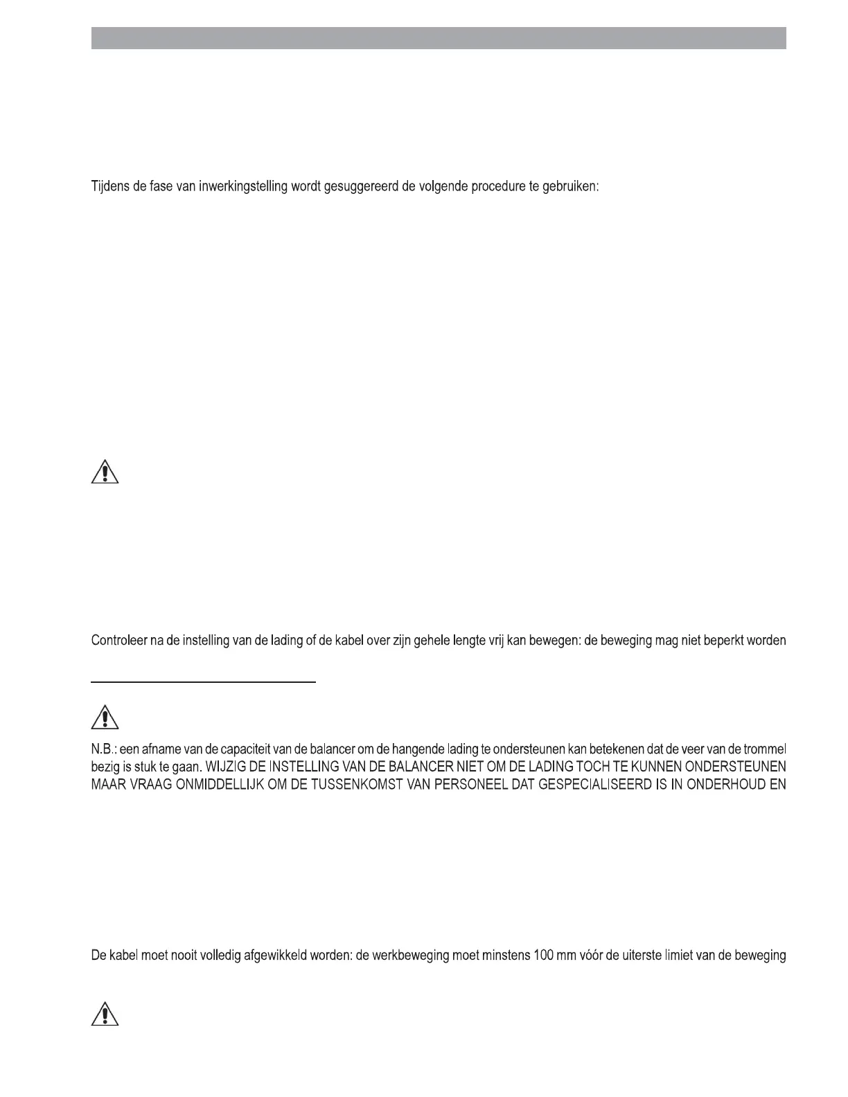 De balancer moet geïnstalleerd worden op een structuur die de geschikte mechanische weerstand heeft. Mechanische weerstand