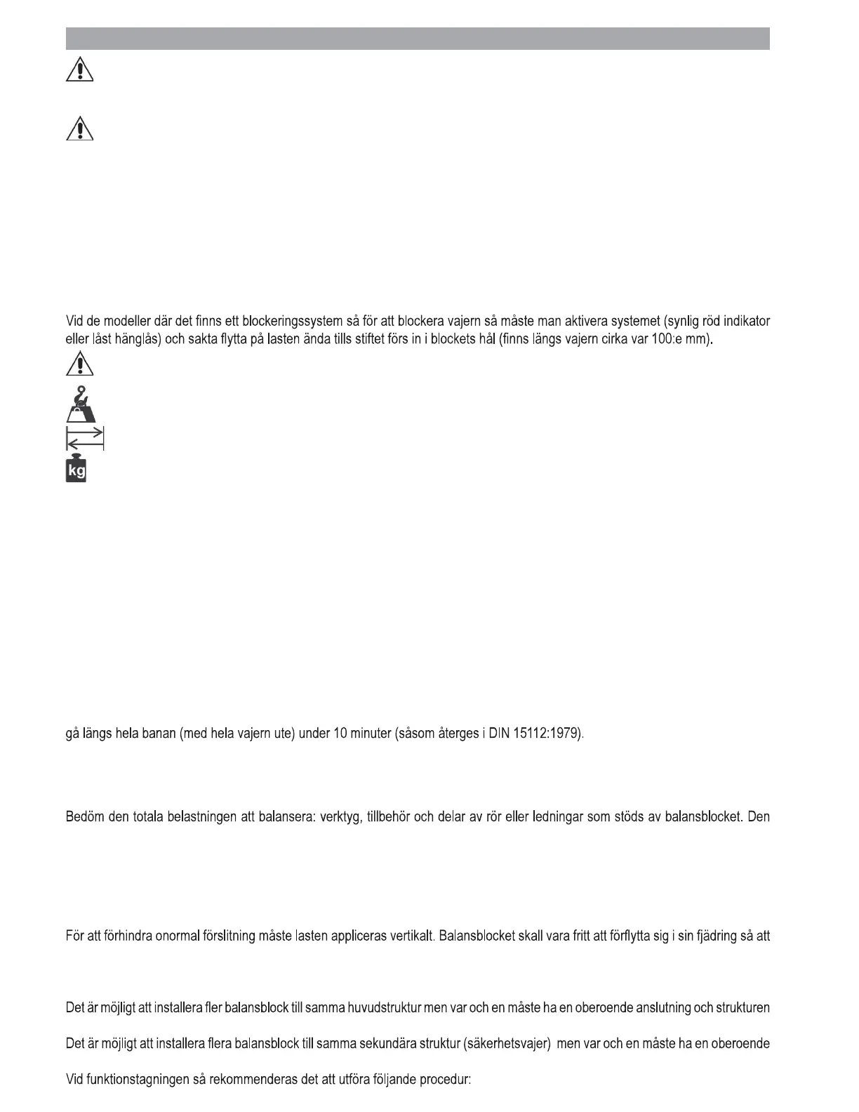 Balansblocket skall installeras vid en struktur med lämpligt mekaniskt motstånd. Mekaniskt motstånd för strukturen > 5*(Balan-