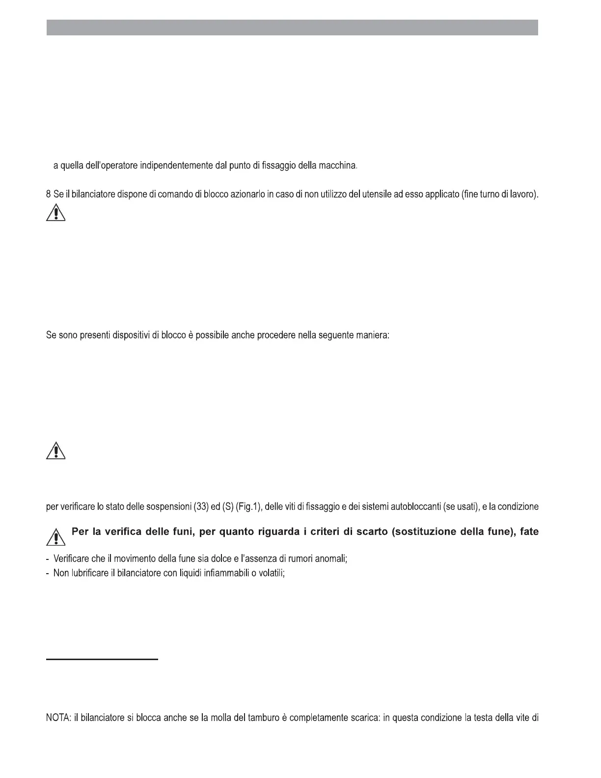 3 nel caso si trovasse il bilanciatore con la fune svolta e nessun carico applicato, NON intervenire e interpellare immediatamente