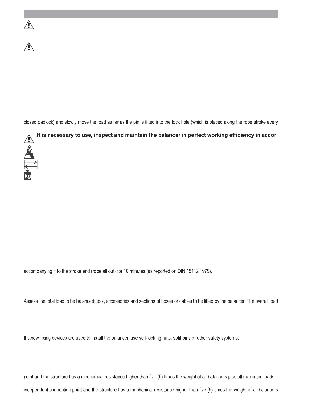 In order to avoid anomalous wear, the load must be applied vertically. The balancer must in any case be free to move in its suspension