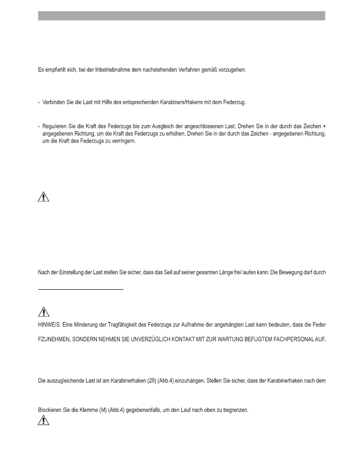 - Lassen Sie die Last sinken, indem Sie das Seil des Federzugs abrollen lassen und regulieren Sie die Laufbegrenzungsklemme,