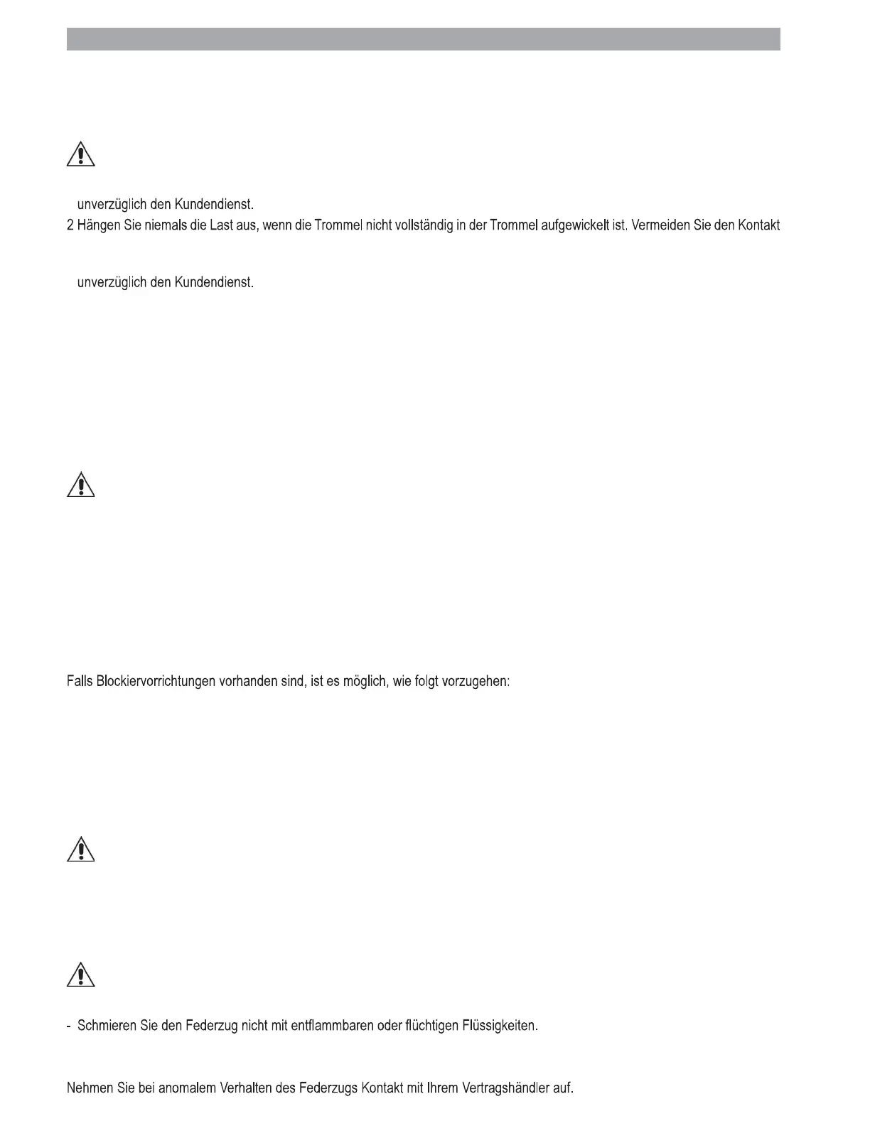 - Der Federzug ist mindestens einmal pro Jahr durch autorisiertes Fachpersonal zu inspizieren.