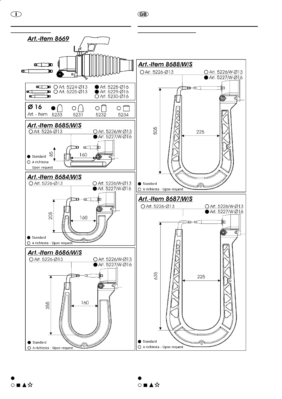 I codici seguiti da “W” - “W/S” corrispondono a bracci con elettrodi