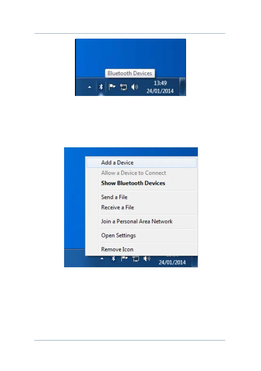 The Bluetooth icon is at the bottom right on the taskbar; a menu will