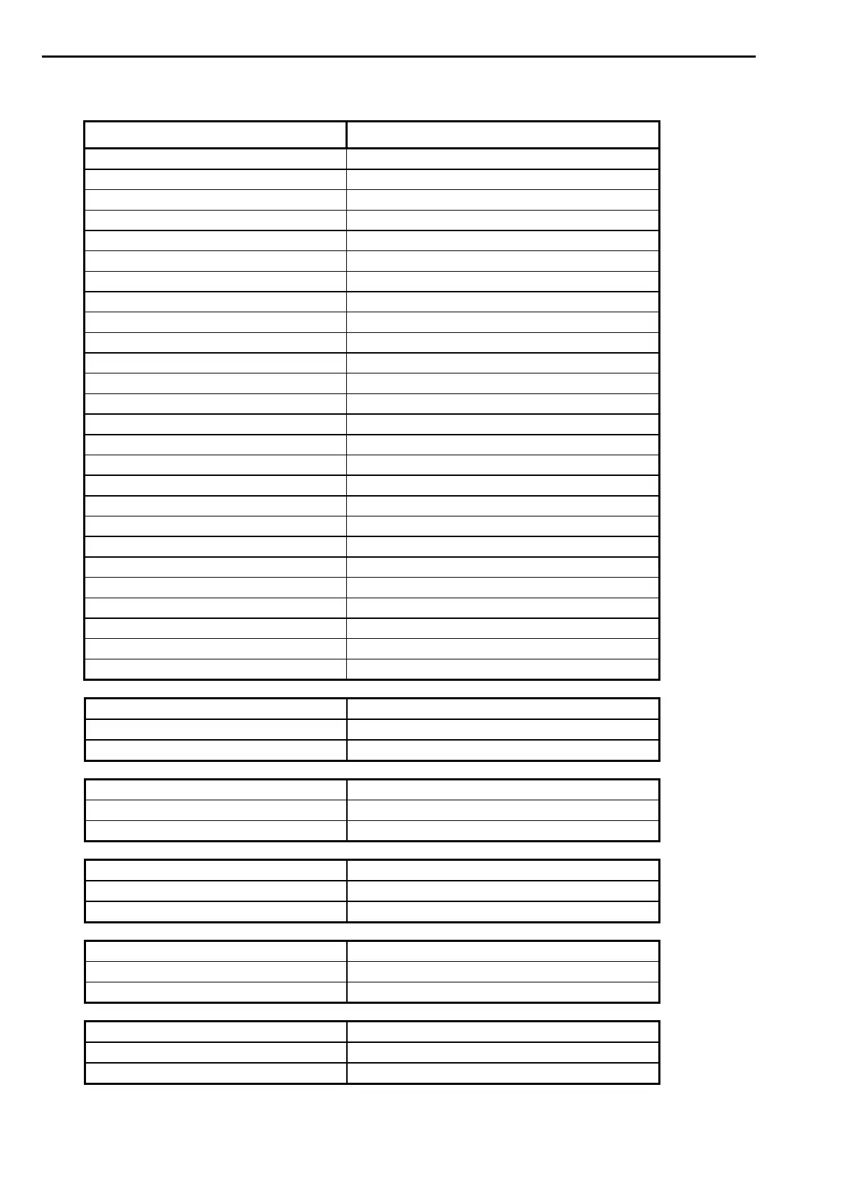 TABLE WITH FIX OPERATING MODE PARAMETERS