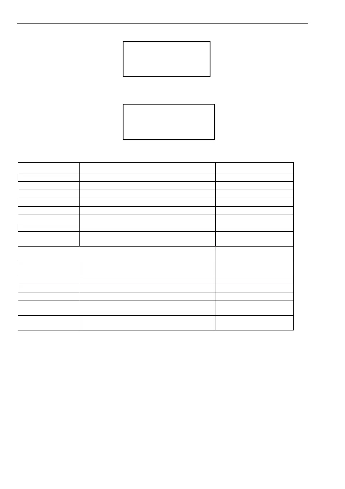 SETUP MENU PARAMETERS TABLE