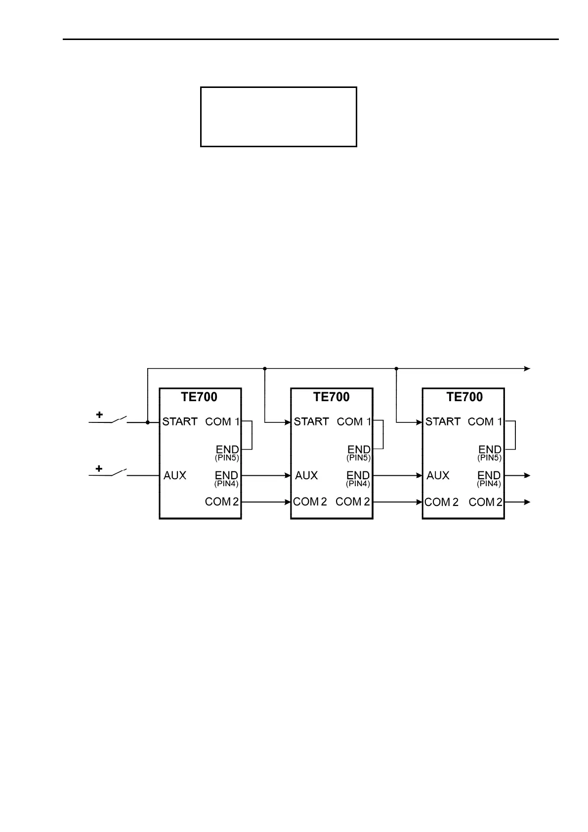 All the TE700 control units receive the cycle start signal simultaneously. Connect the CYCLE