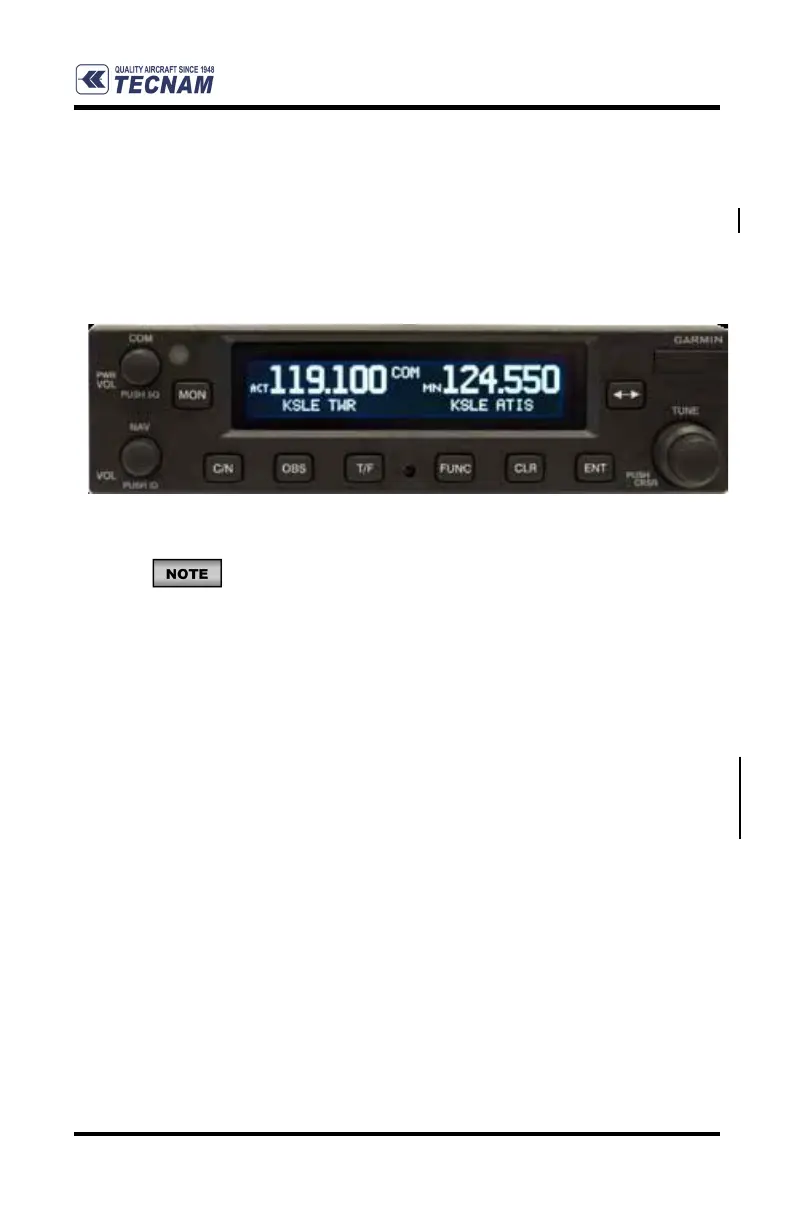 When installed as secondary COM, the GNC 255A is connected to the aircraft electrical