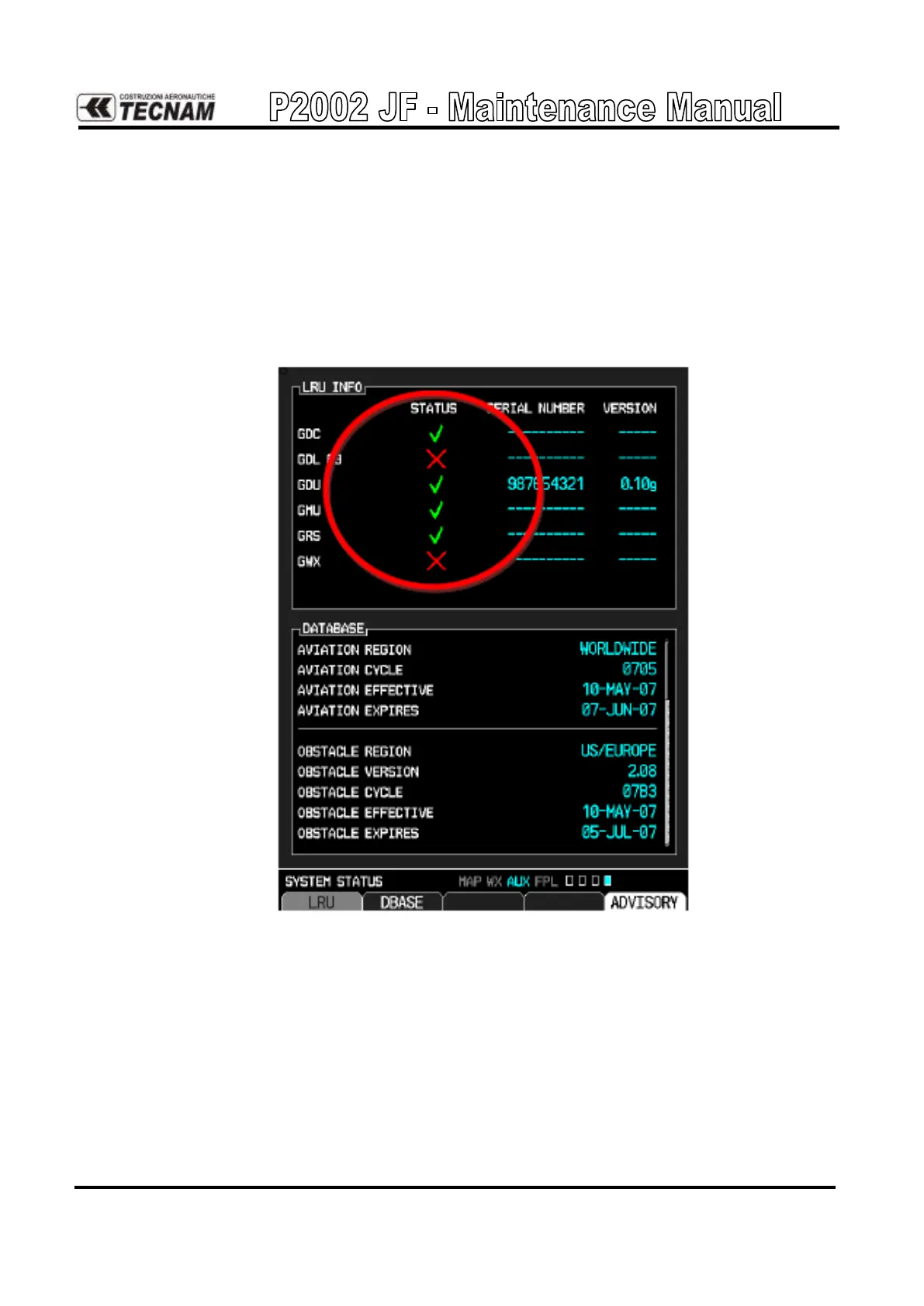 LRU FAILURE INDICATIONS ON THE SYSTEM STATUS PAGE (NORMAL