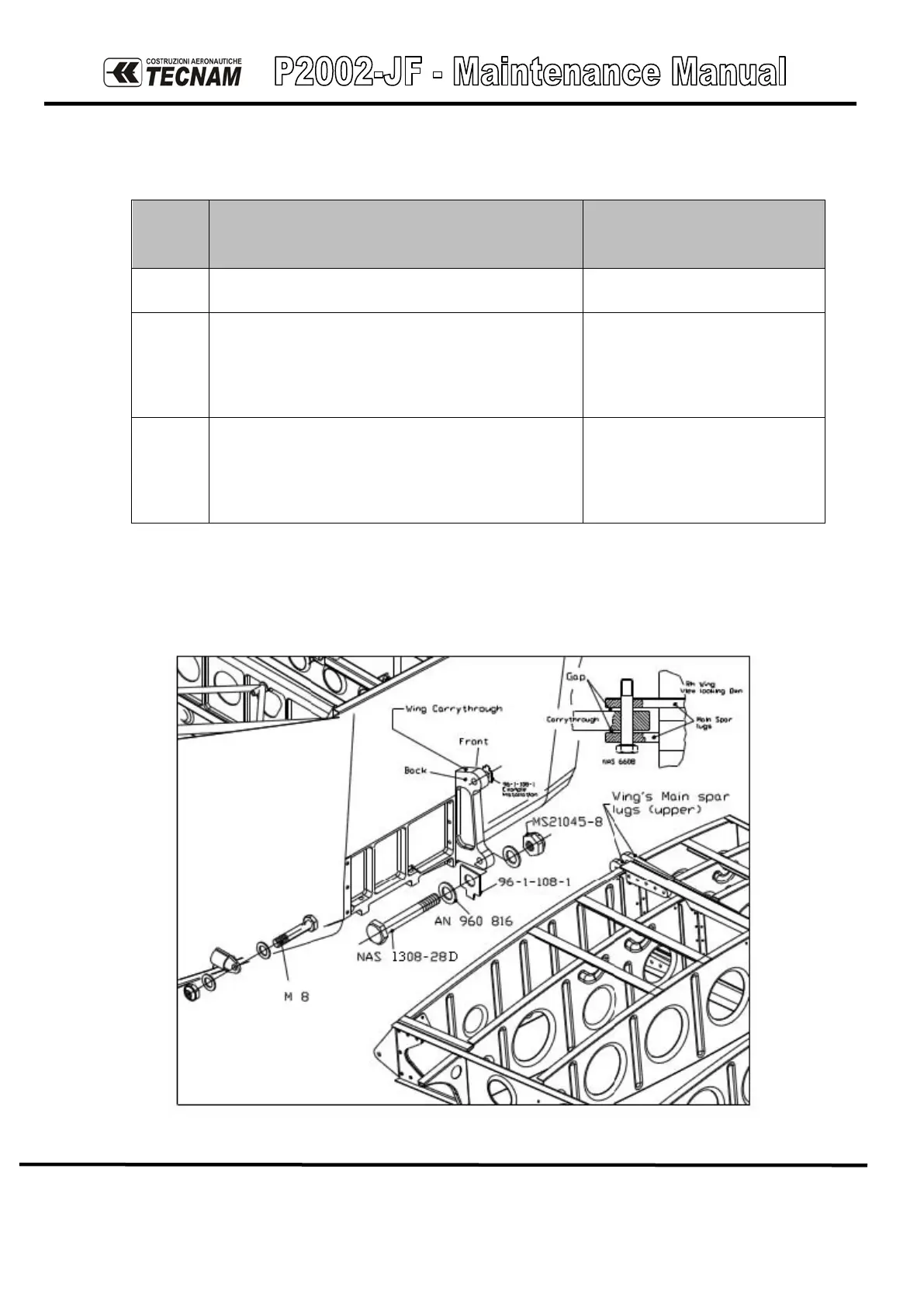 • Torque value front bolts (NAS 1308-28D): 100 Nm