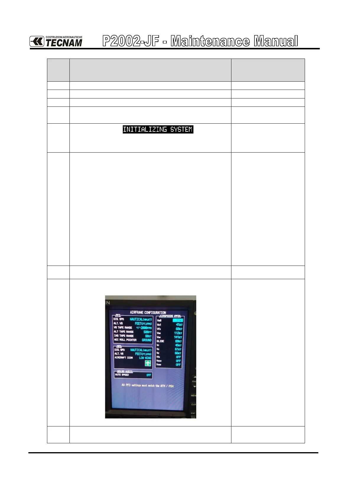 AIRFRAME CONFIGURATION page: