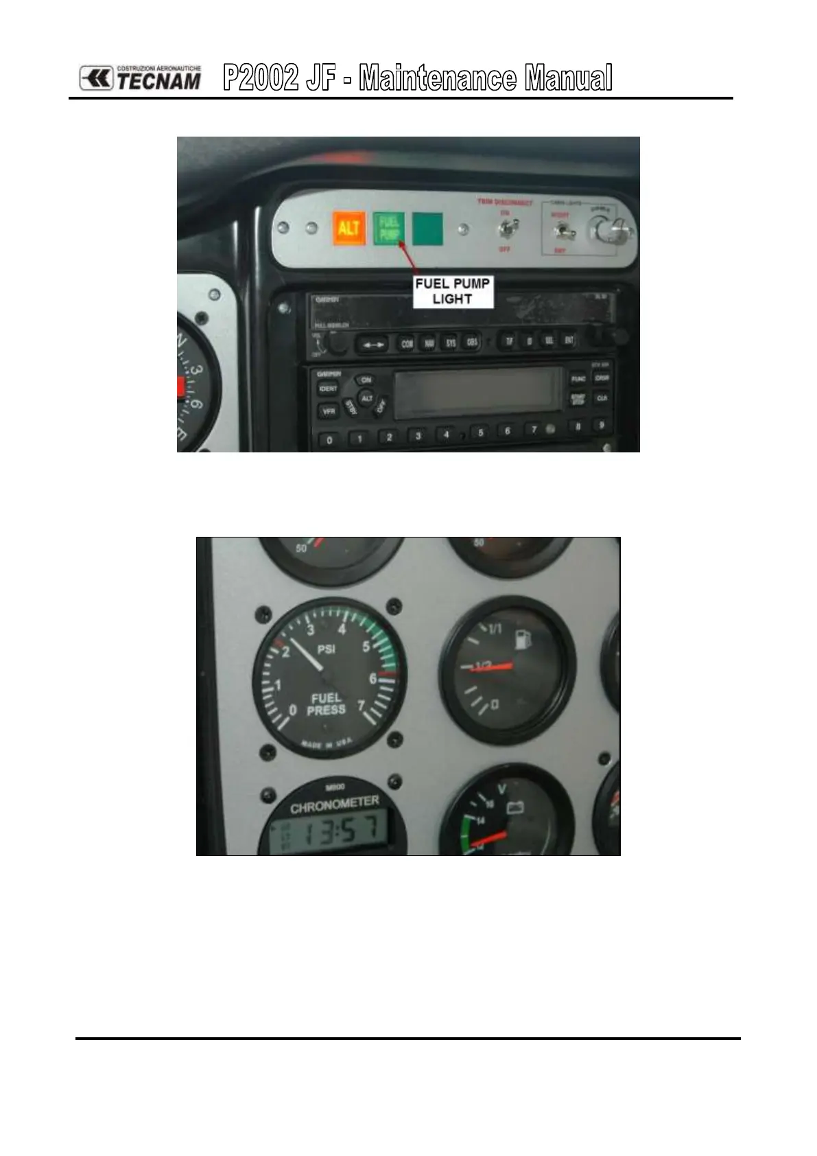 Tecnam P2002 JF - Fuel Pressure Indicator; Fuel Pump Light