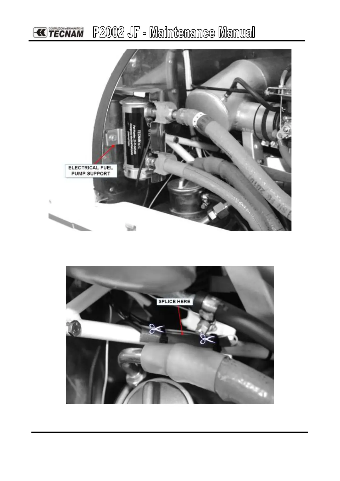 Tecnam P2002 JF - Electrical Fuel Pump Support; Fuel Pump Splice Location