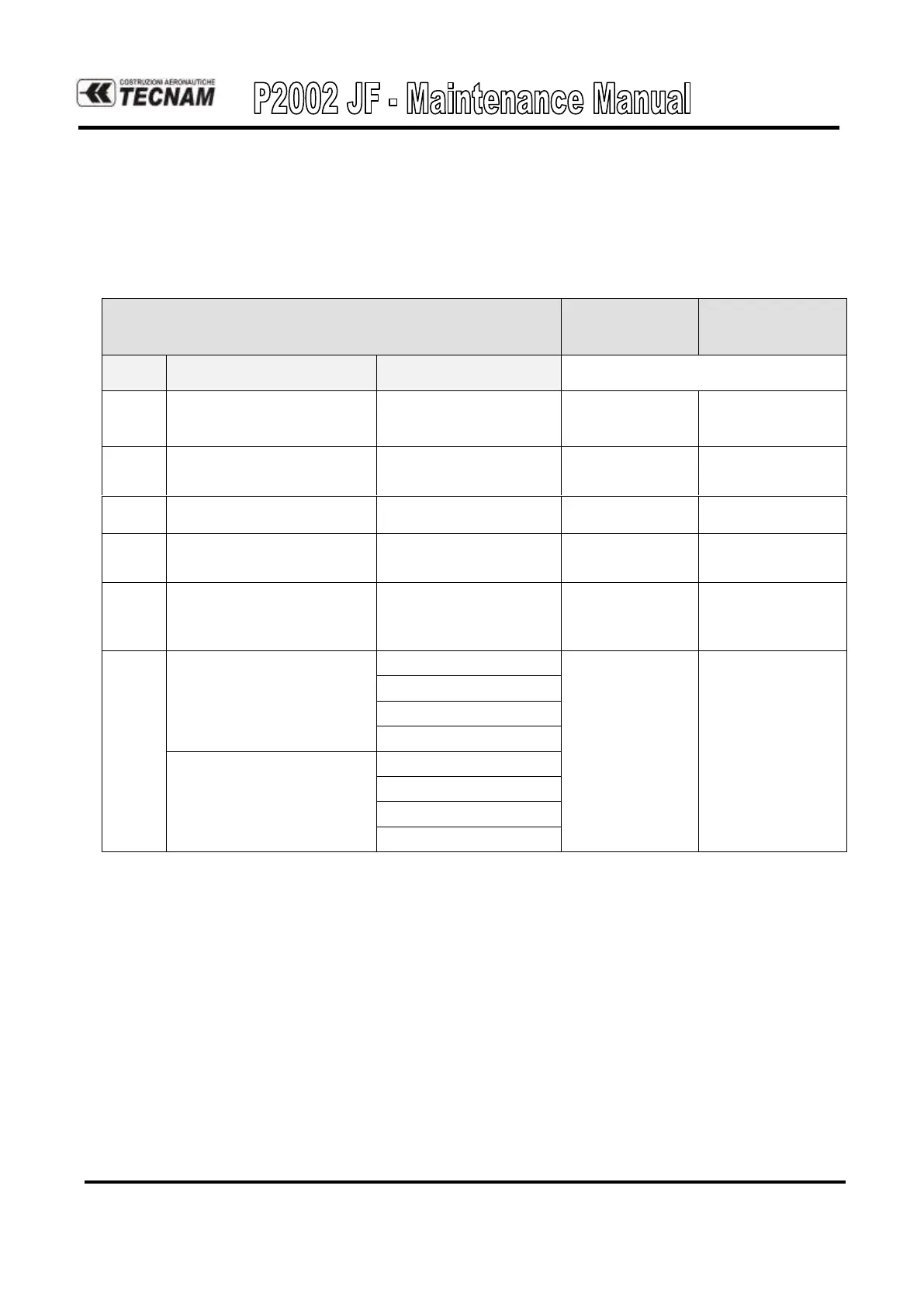 Tecnam P2002 JF - Component Time Limits; Time Limits Table