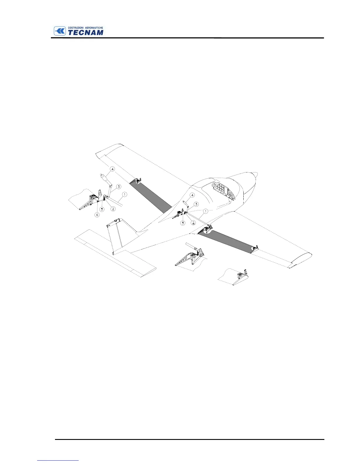 with main pushrods (5) issuing from the wings. Main rods (5) are connected to