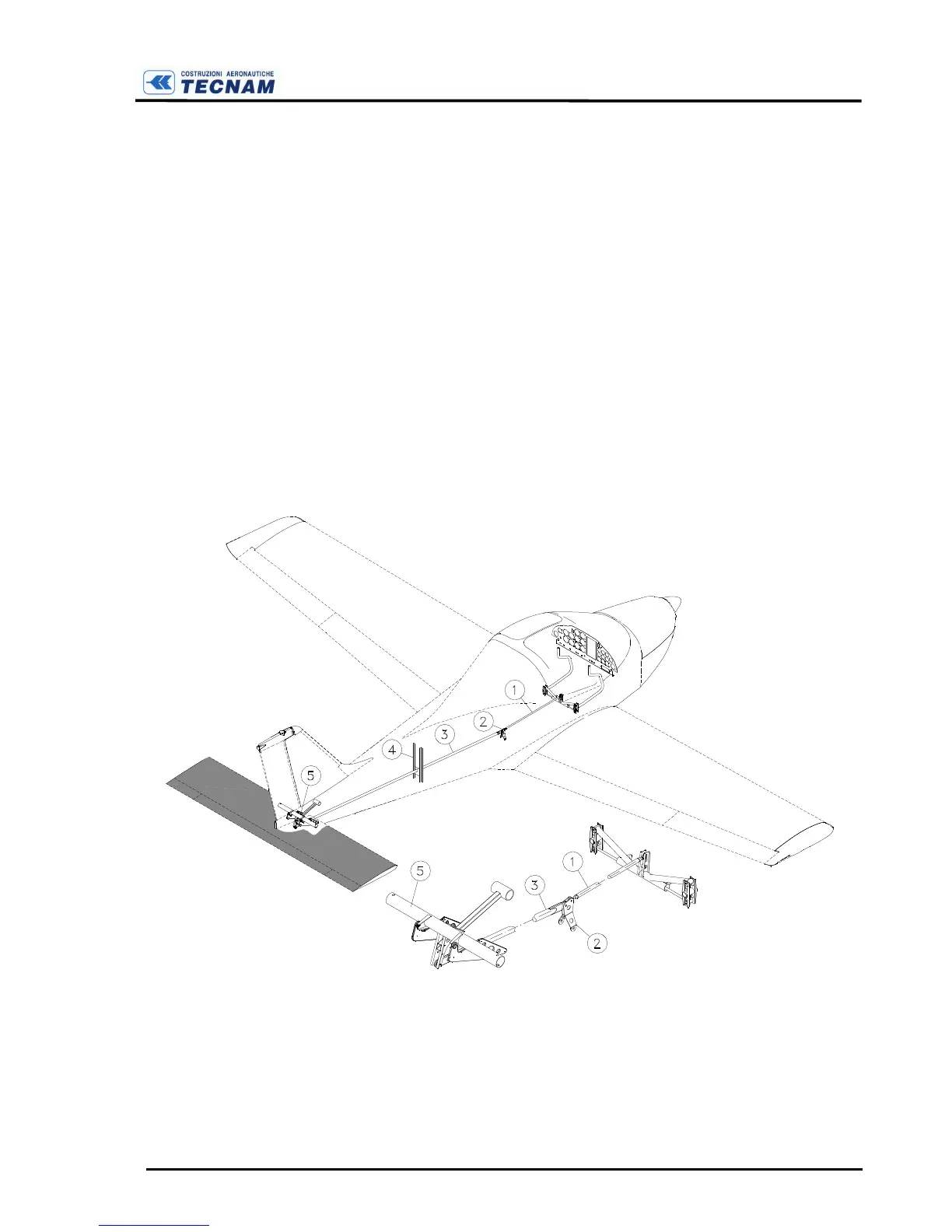 rod (1) linked to a bellcrank (2) and a shaft (3) that runs through the tail cone