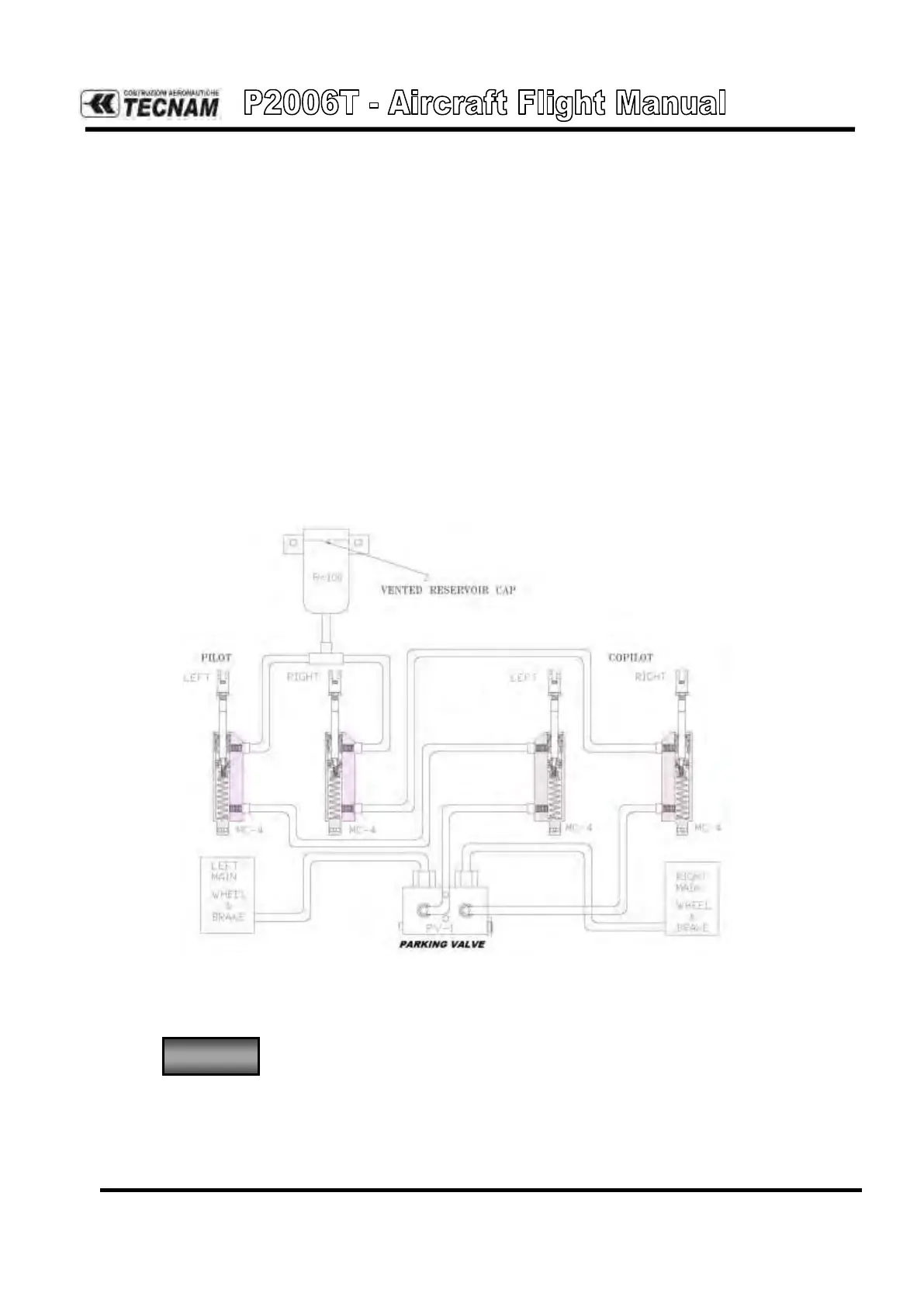 each main wheel. A master cylinder is attached to each pilot/co-pilot’s rudder pe-