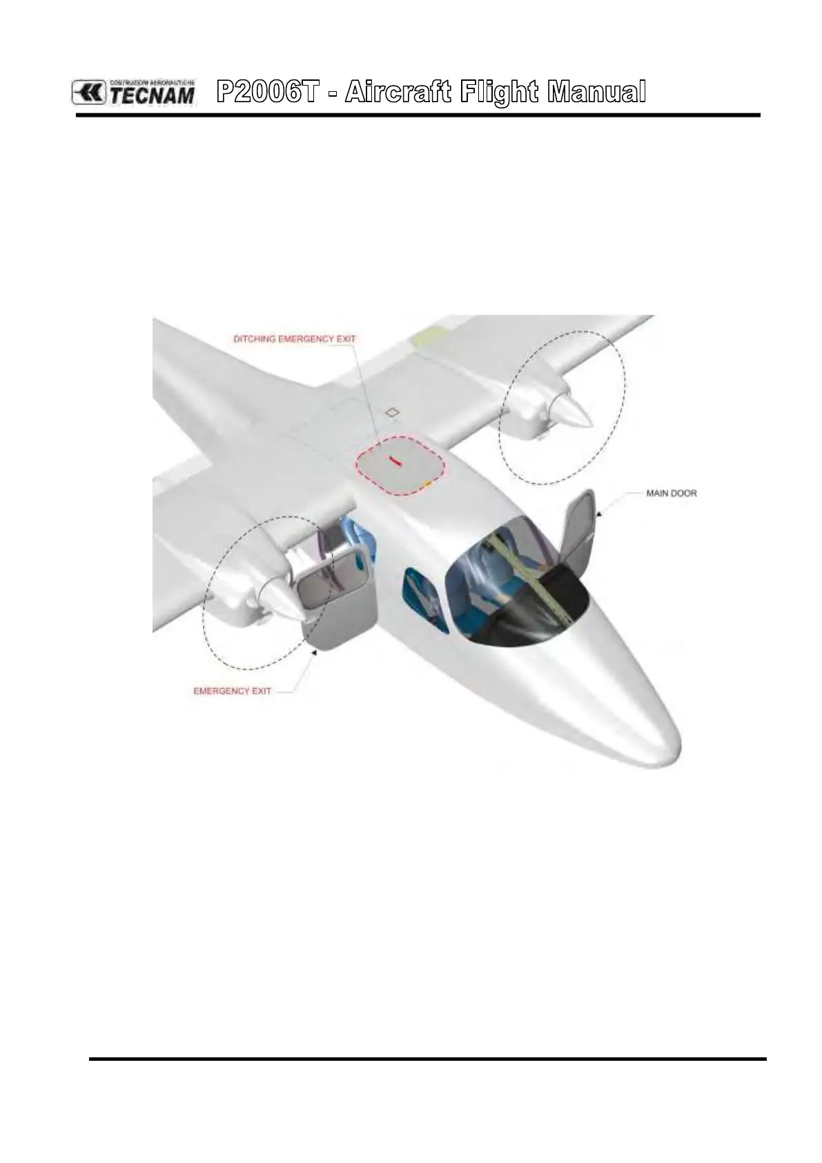 emergency exit (passenger door) is located aft, on the right side of the fuselage.
