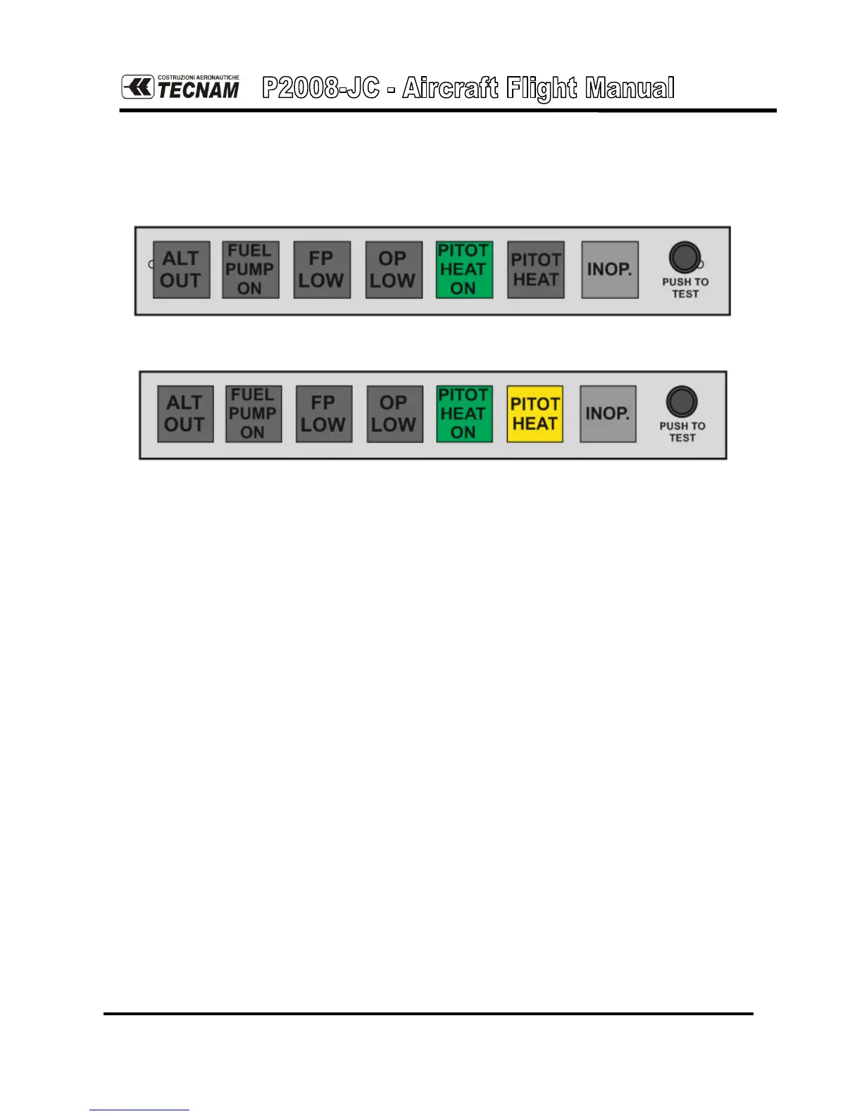 When the Pitot Heat system (if installed) is activated, the green PITOT HEAT ON