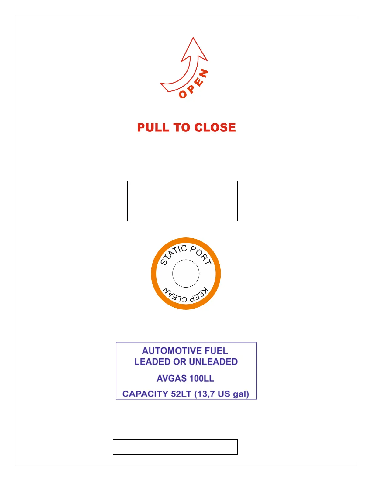 The following placard is located on the pilot side of the empennage forward of the stabilator and made of stainless steel.