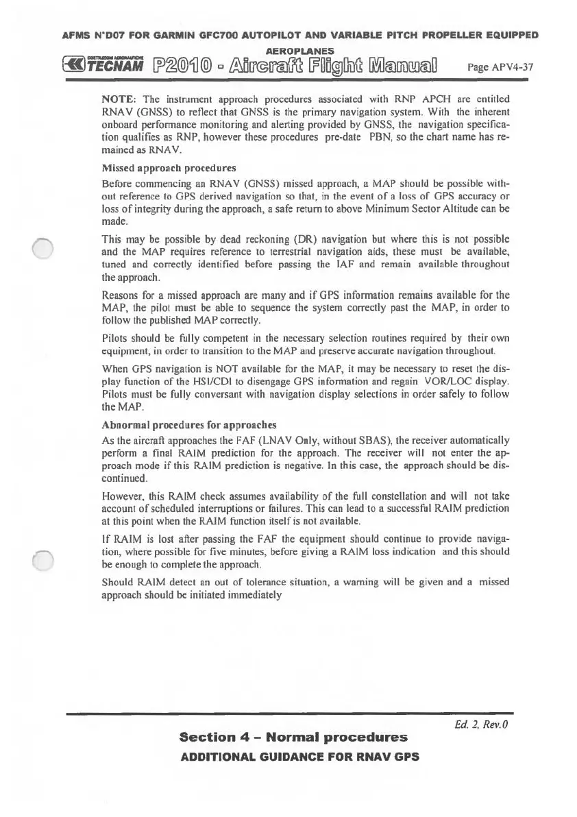 equipment, in order to transition to the MAP and preserve accurate navigation throughout.