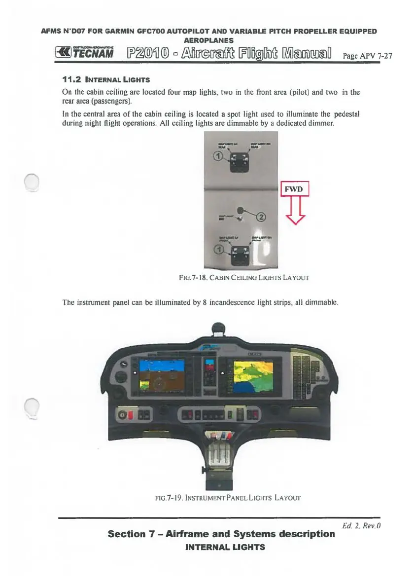 during night flight operations. All ceiling lights are dimmable by a dedicated dimmer.