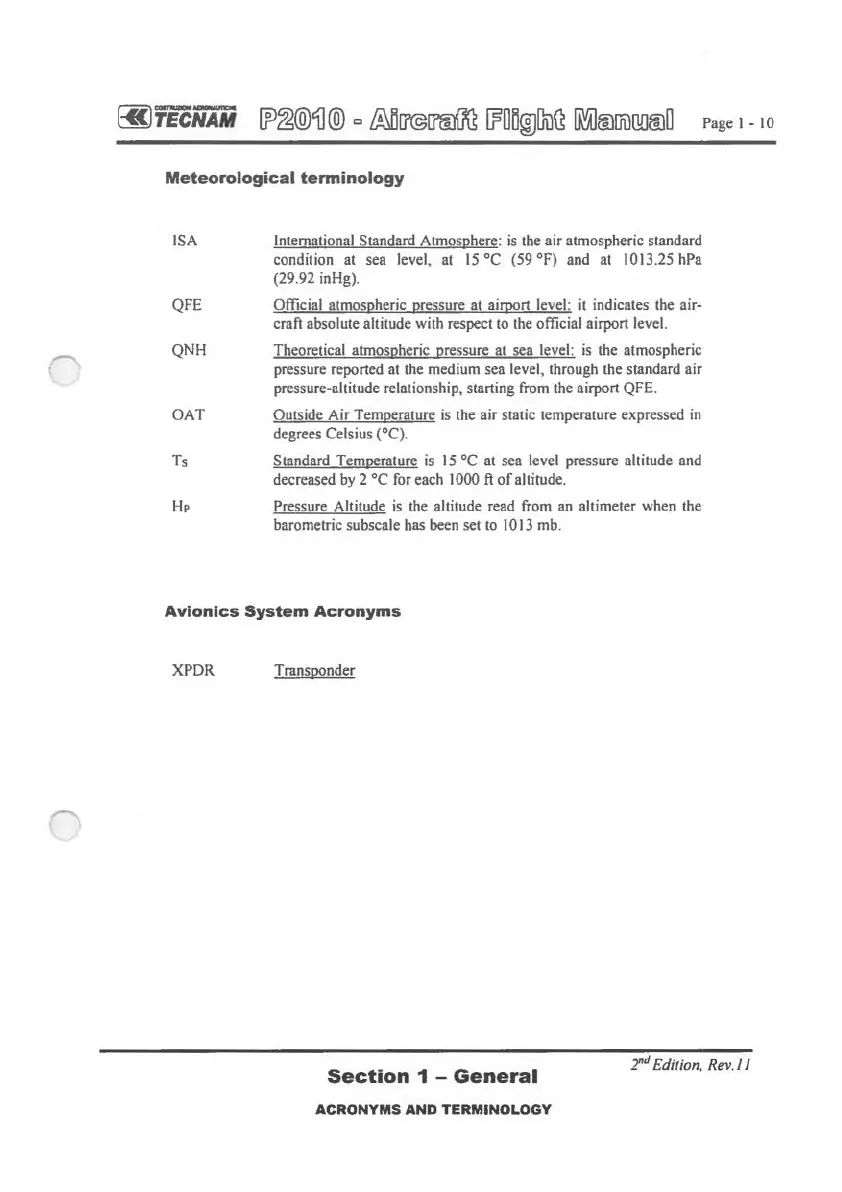 QNH Theoretical atmospheric pressure at sea level: