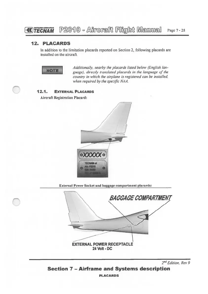 External Power Socket and baggage compartment placards: