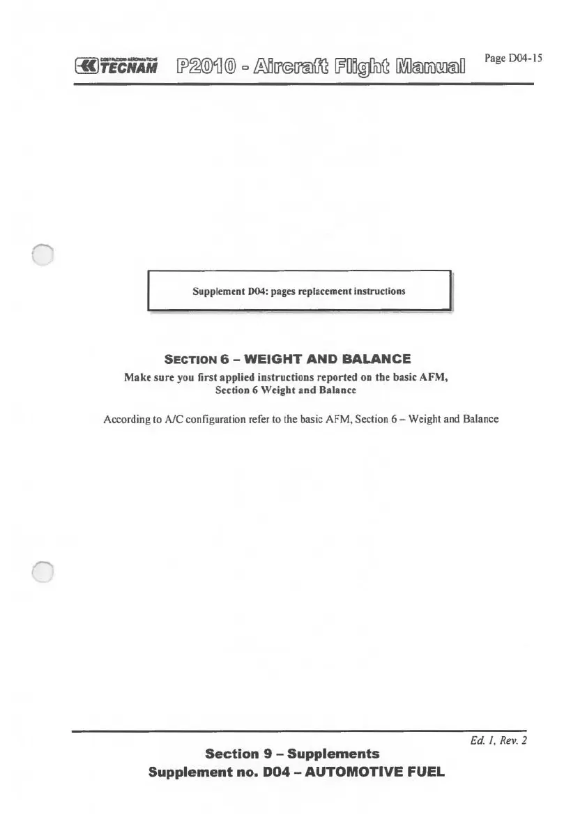 Tecnam P2010 2015 - Section 6 - Weight and Balance