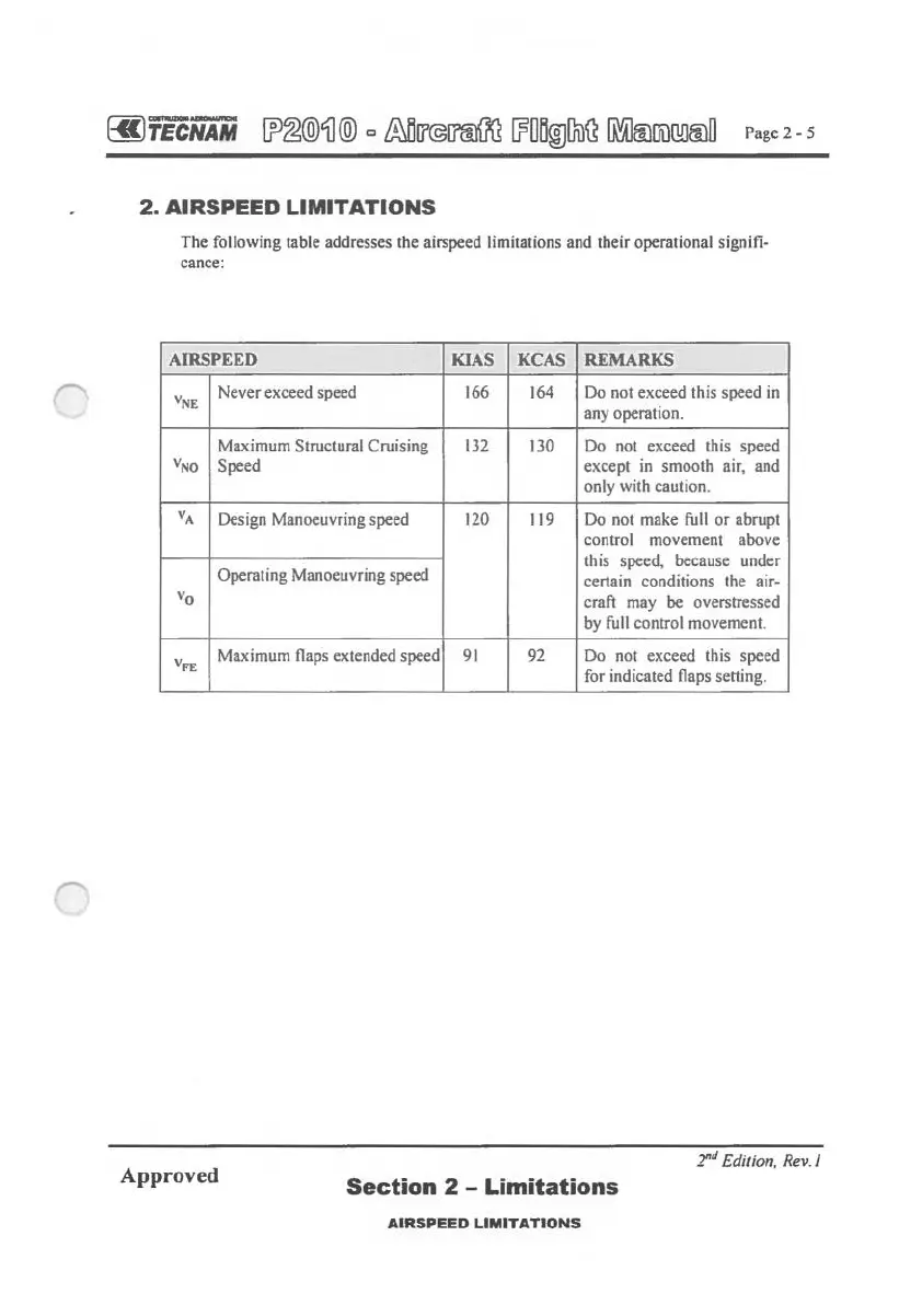 Tecnam P2010 2015 - Airspeed Limitations