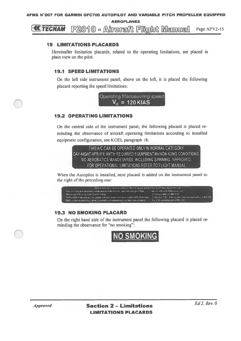 Hereinafter limitation placards, related to the operating limitations, are placed