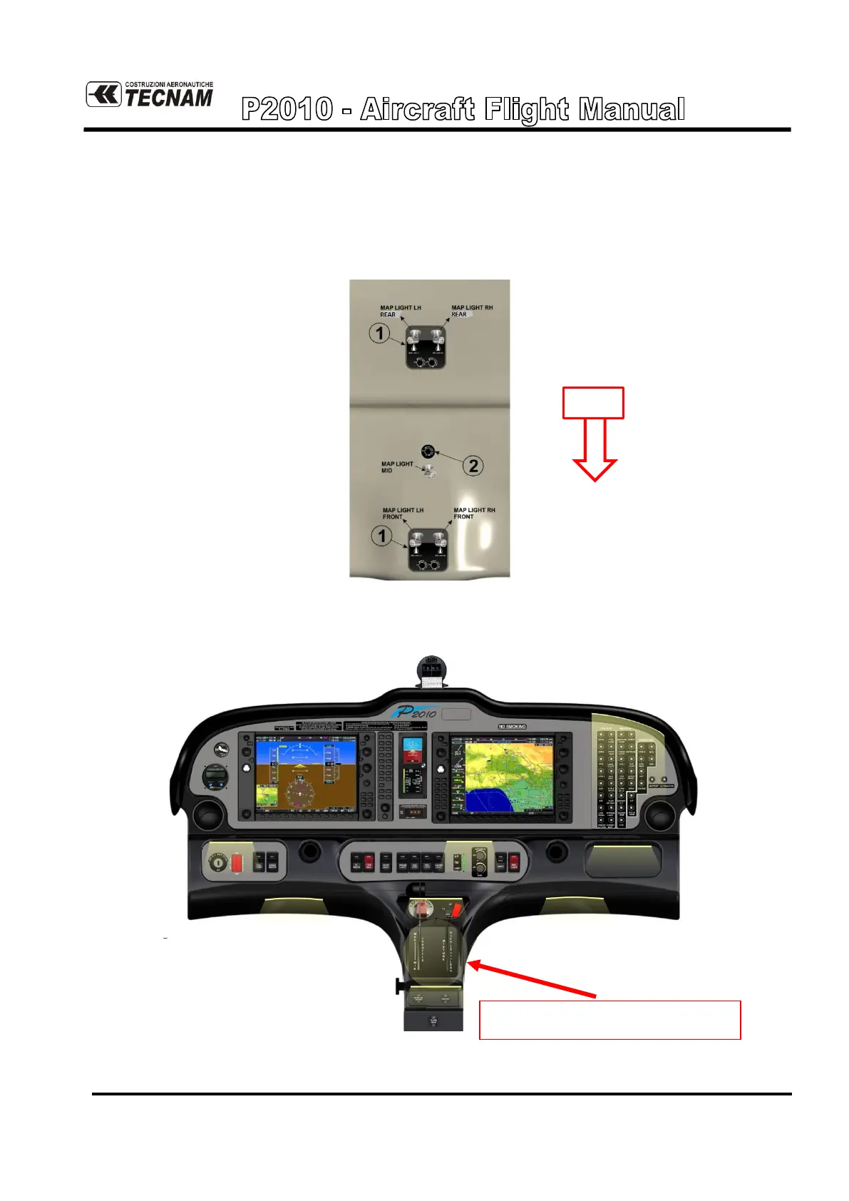 On the cabin ceiling are located four map lights, two in the front area (pilot) and two