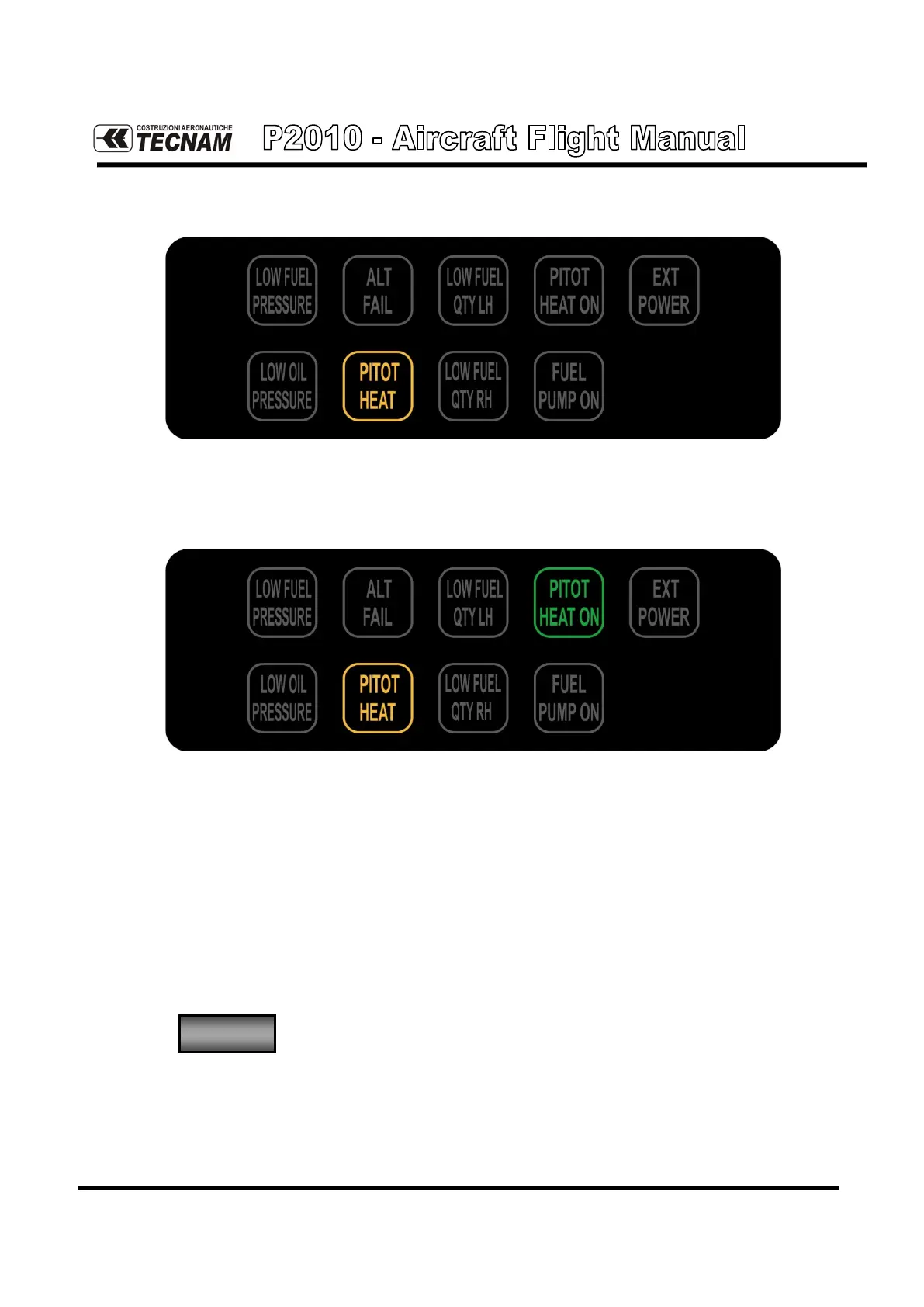 When the Pitot Heating system is activated, the green PITOT HEAT ON ad-