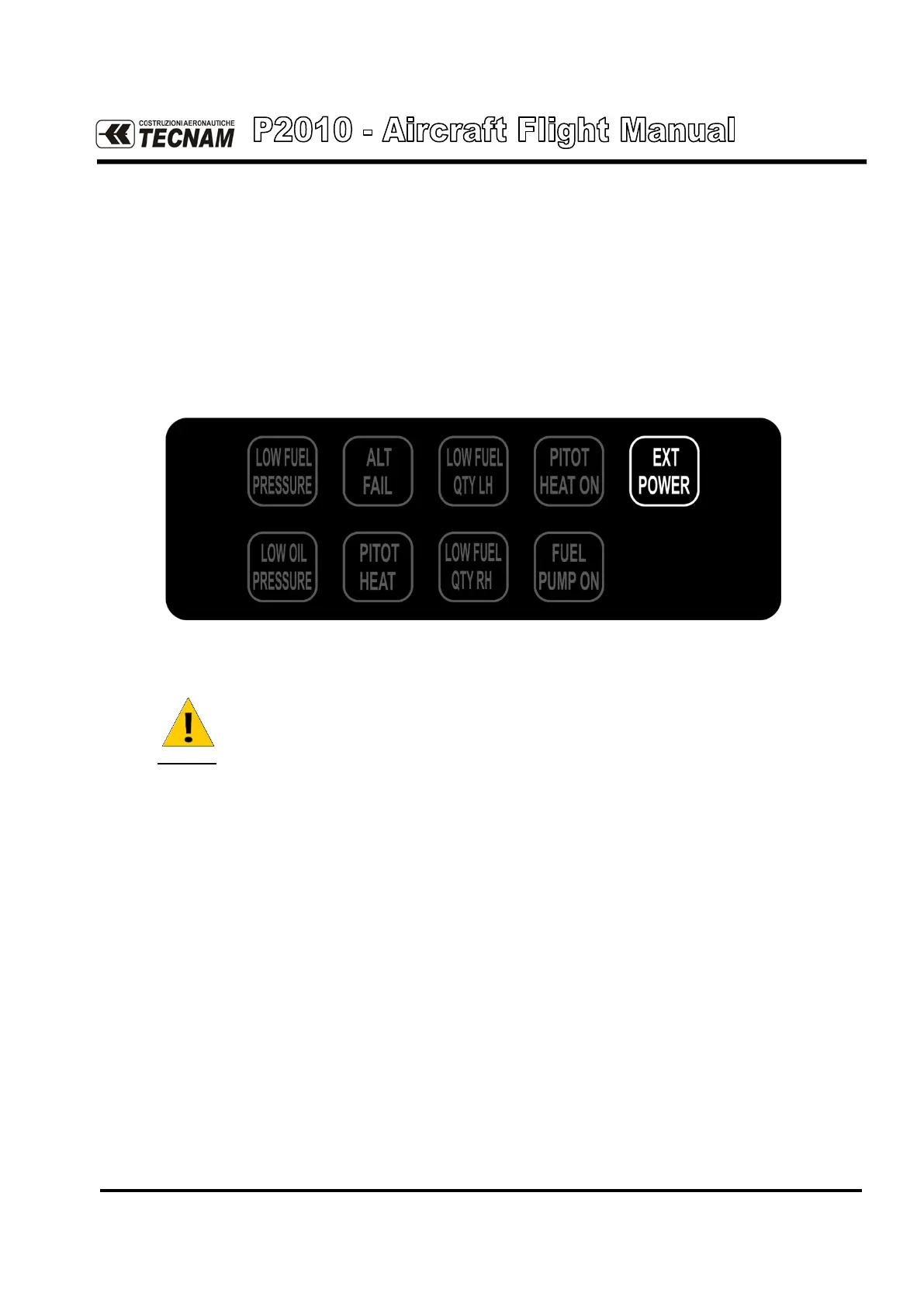 A white advisory “EXT. POWER” label will appear on annunciator panel upon