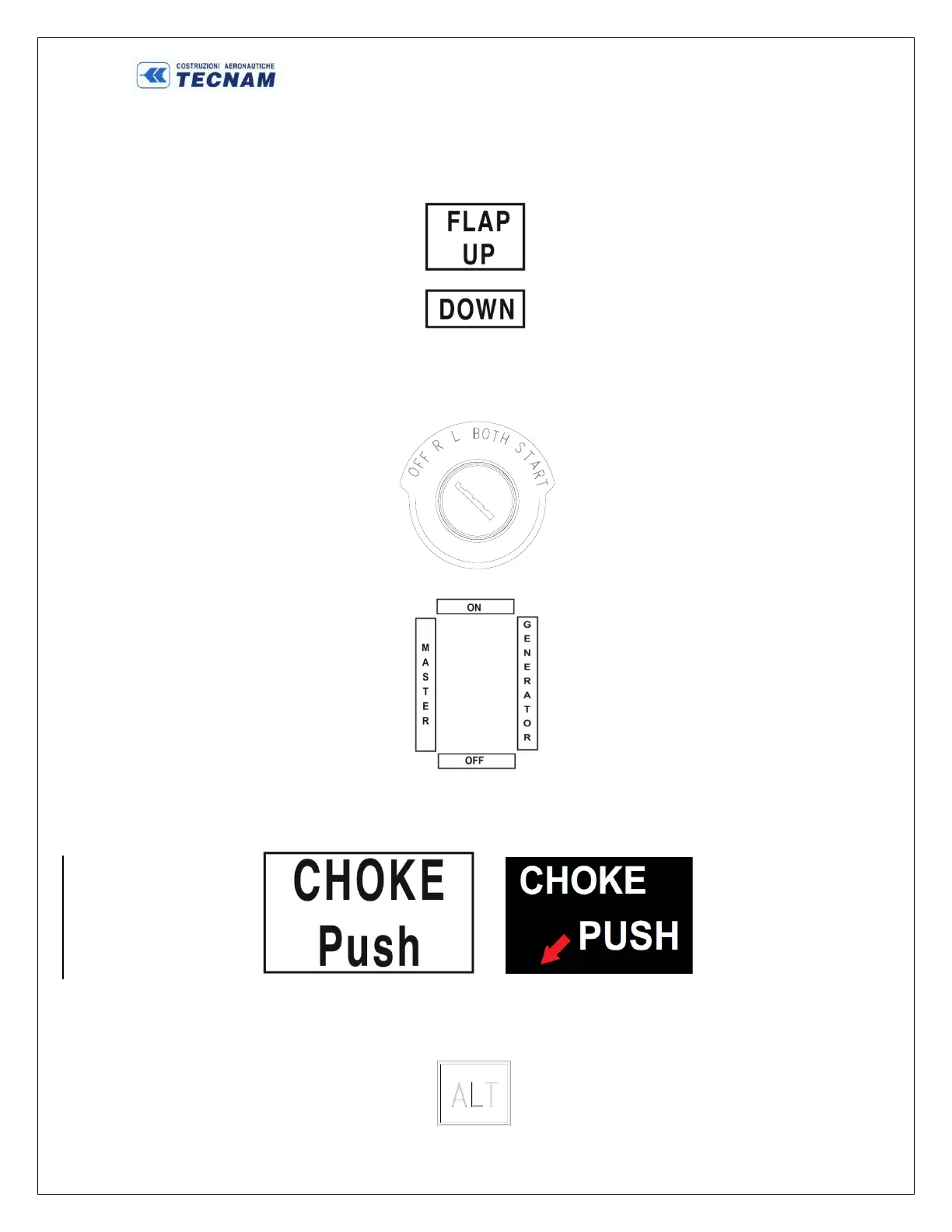 The flap control switch is located on the lower portion of the instrument panel. The following placards are just next to it.