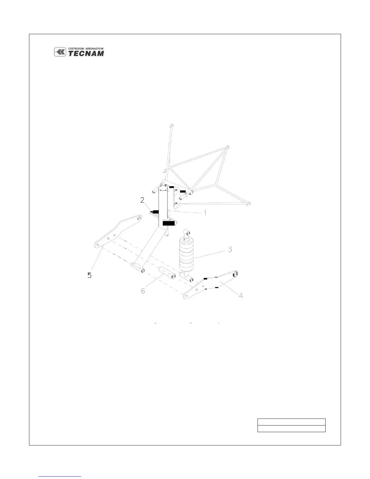 Gear fork is made up of light alloy plates (4) & (5) and a spacer (6); it hinges on the strut leg and is braced by a