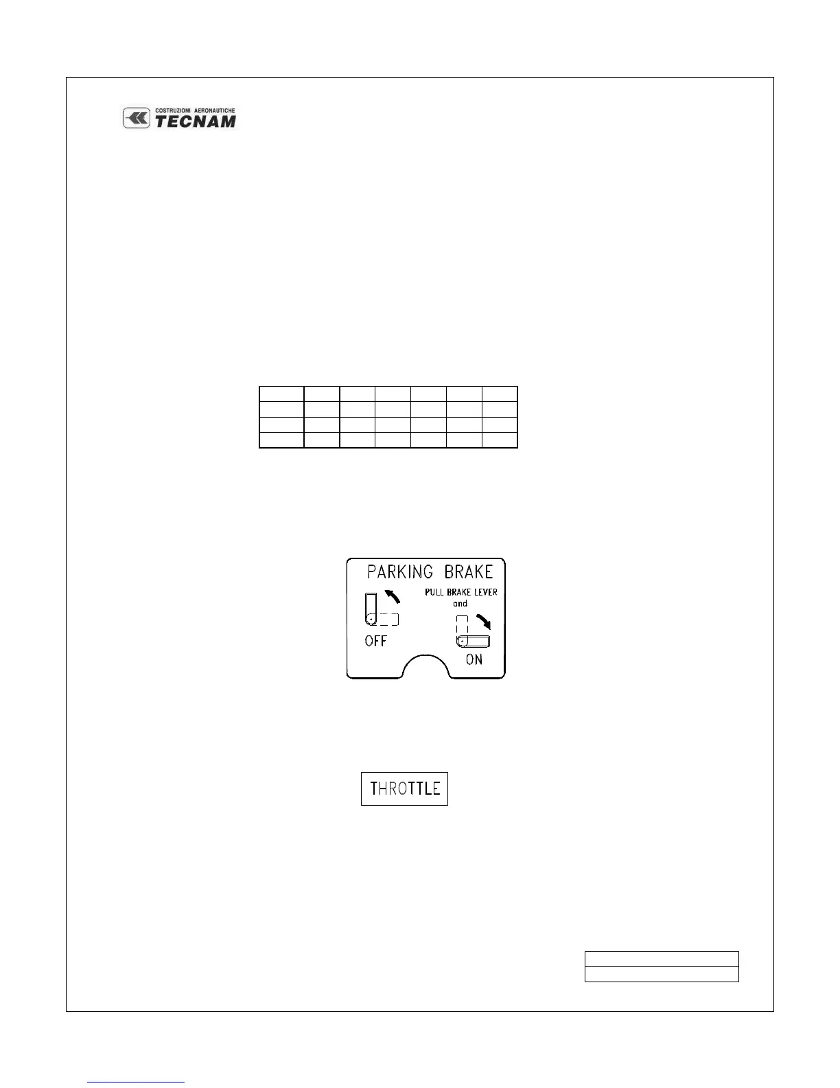 Tecnam P92 Echo Super - Aircraft Markings and Placards; 8.1 Markings and Placards Identification; 8.1.1 Magnetic Compass Compensation Table; 8.1.2 Parking Brake Valve Placard