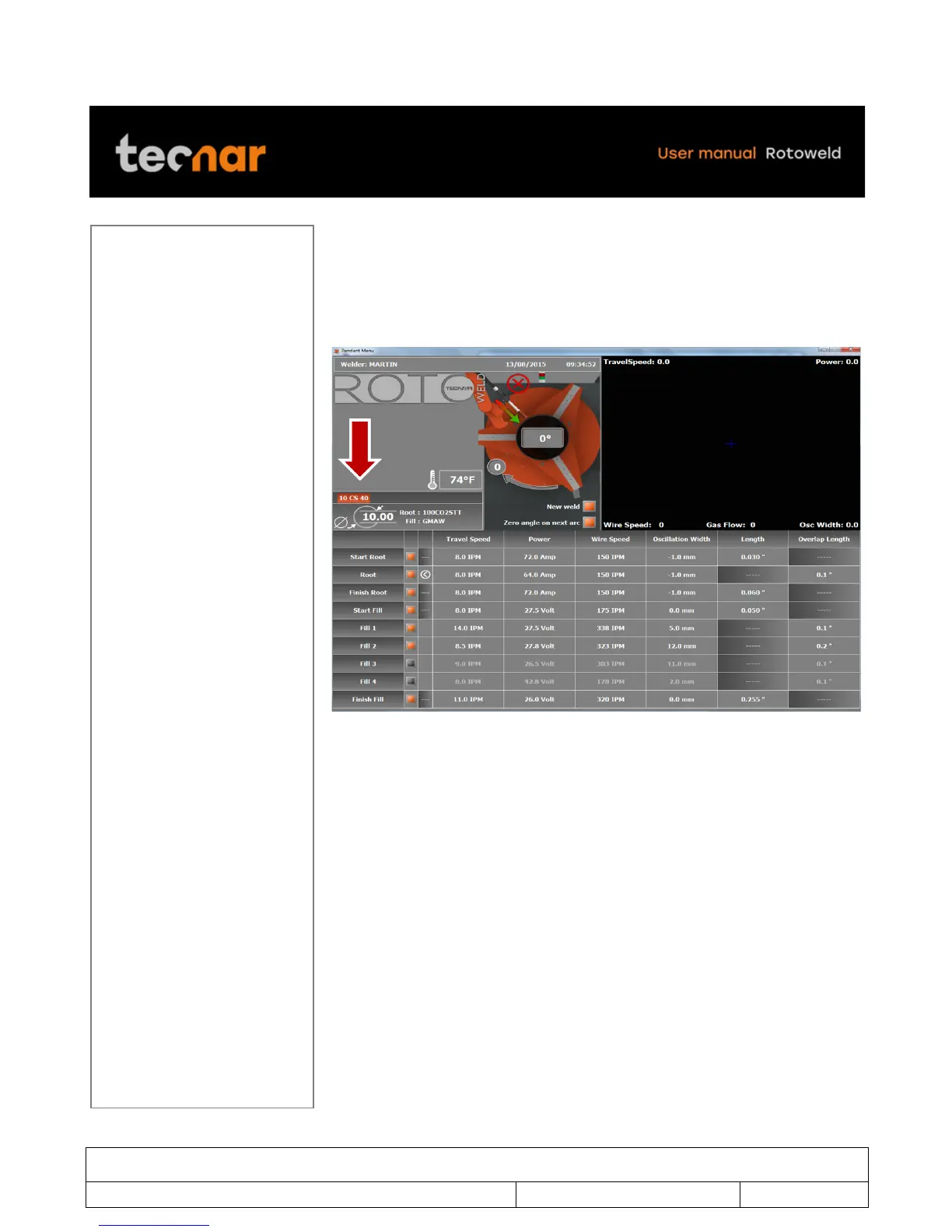 The bottom portion of the welding screen is dedicated to the welding