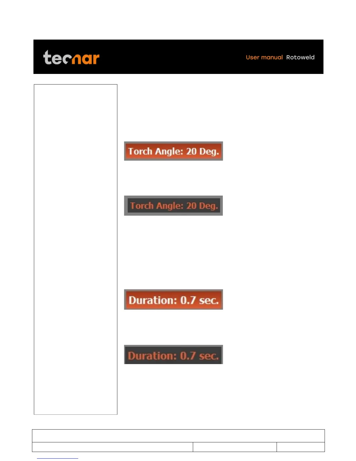 Once finished, you can exit the TORCH ANGLE parameters by pressing the