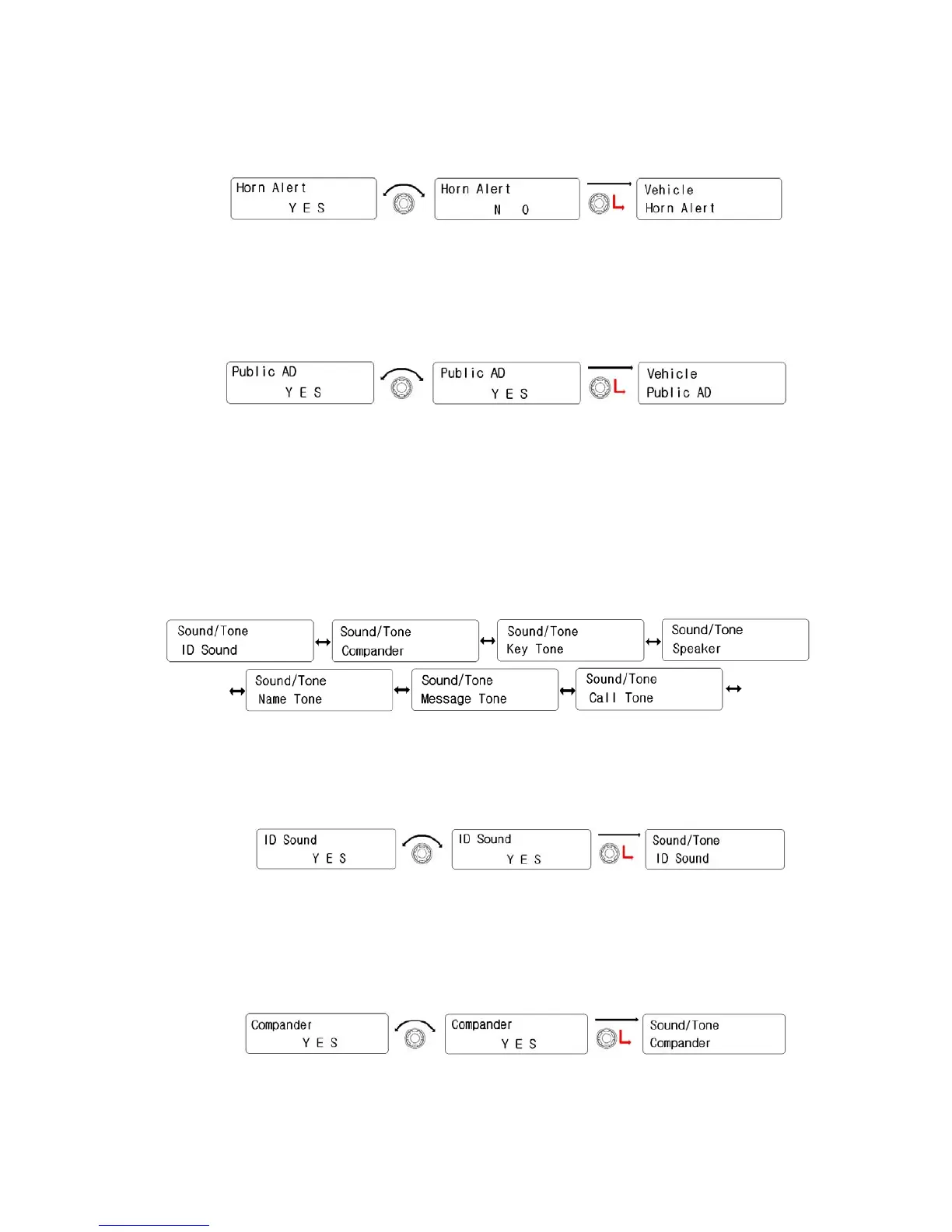 There are 7 kinds of sub-menu. (ID Sound, Comapnder, Key Tone, Speaker, Name Tone,