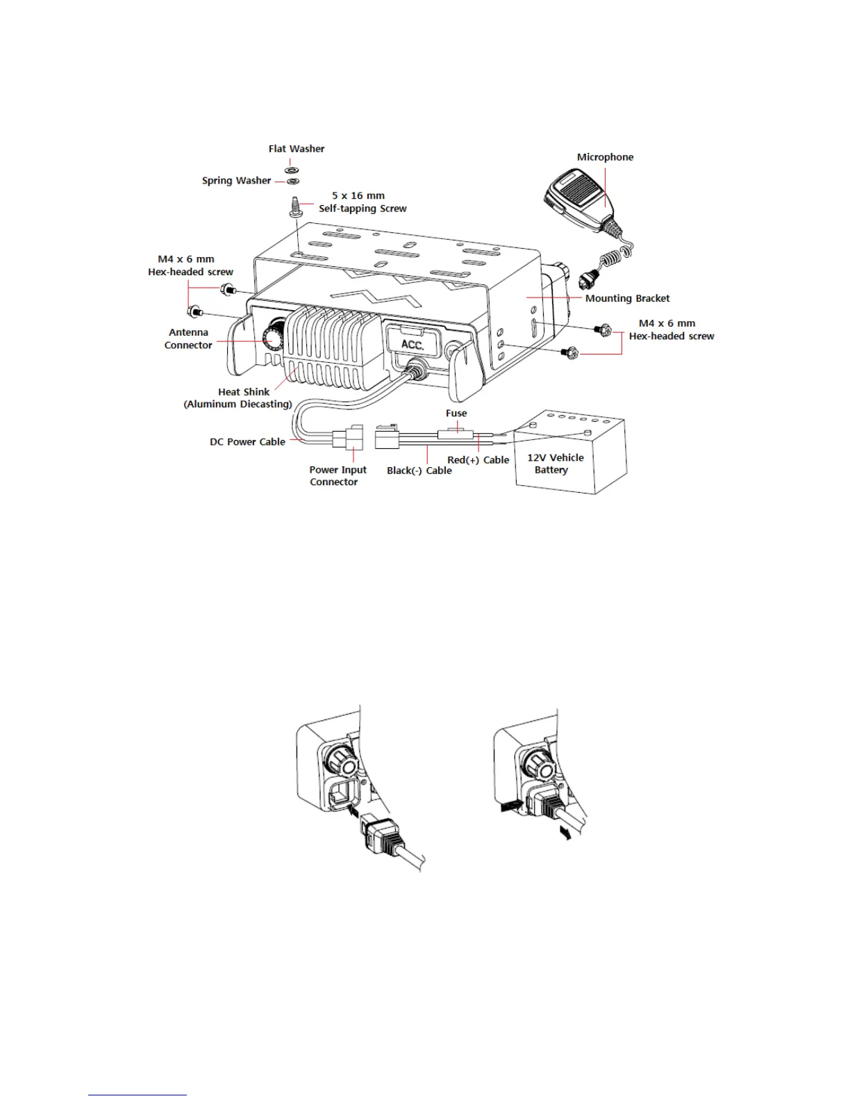 1. Insert the microphone plug into jack on the front panel of the transceiver.