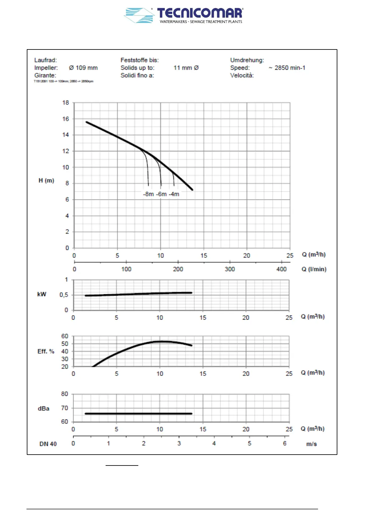 TECNICOMAR ECOmar 45 S - Macerating;Discharge Pumps Performance Curves