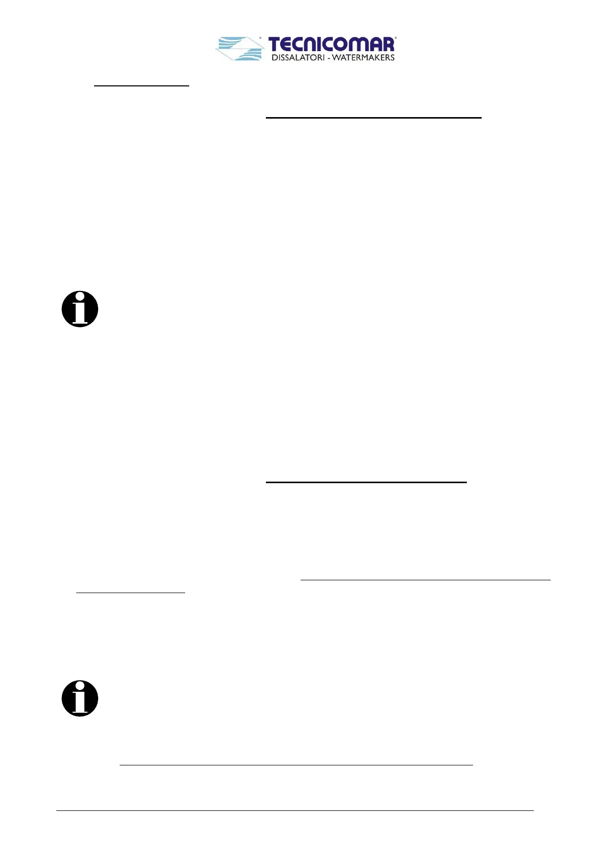 Instructions for the installation, use and maintenance of Tecnicomar watermaker