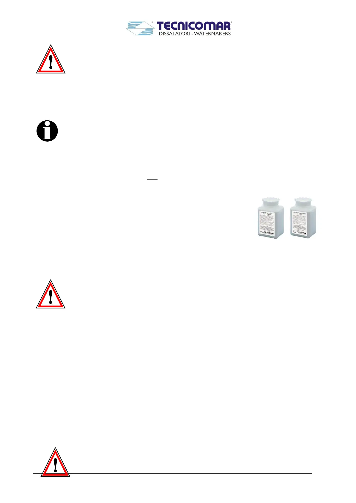 chemicals and filter cartridges supplied by Tecnicomar.