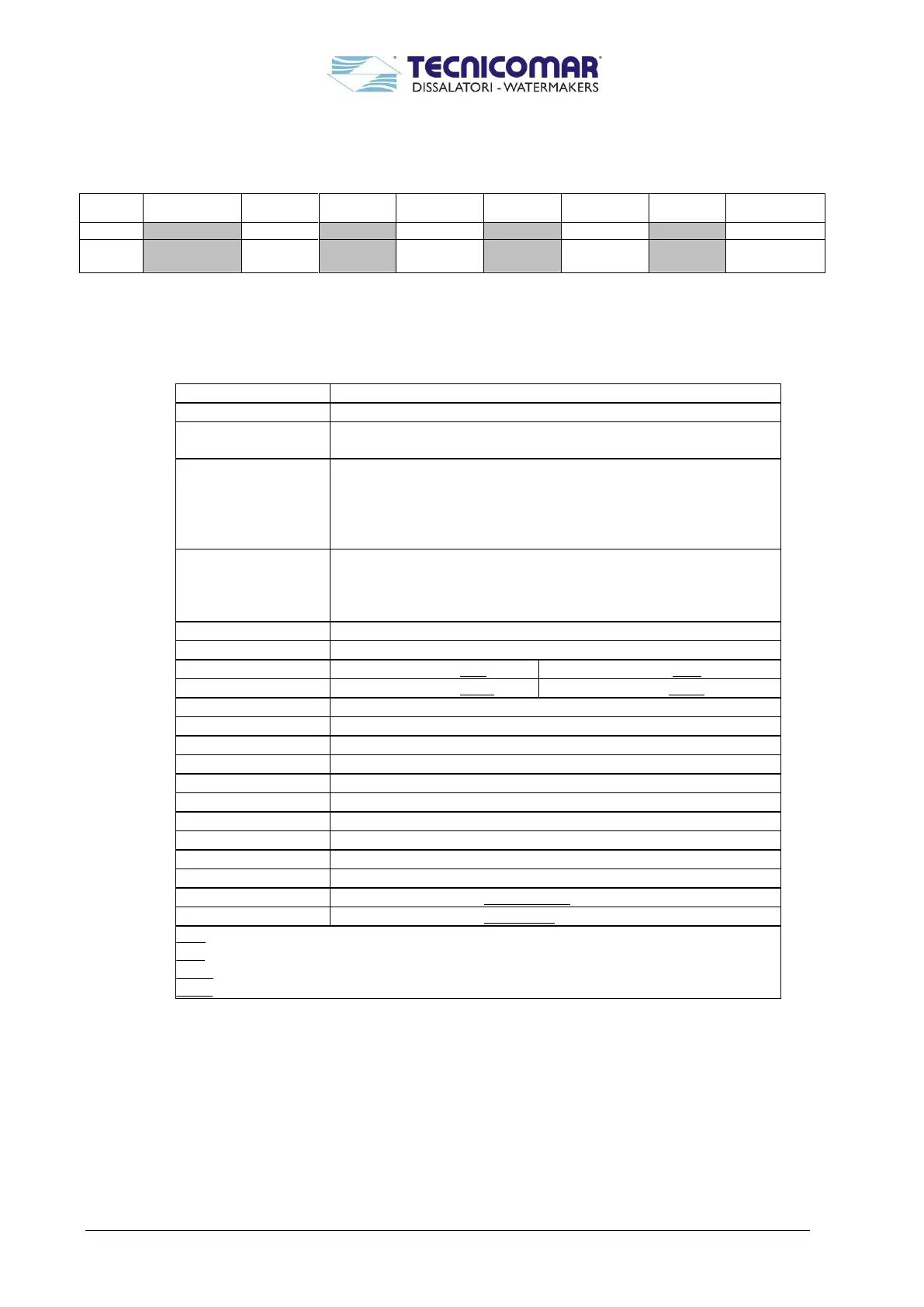 Instructions for the installation, use and maintenance of Tecnicomar watermaker