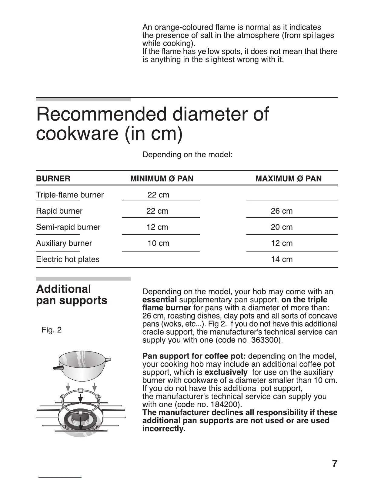 Tecnik TKH 301/3 - Cookware Recommendations; Additional Pan Supports