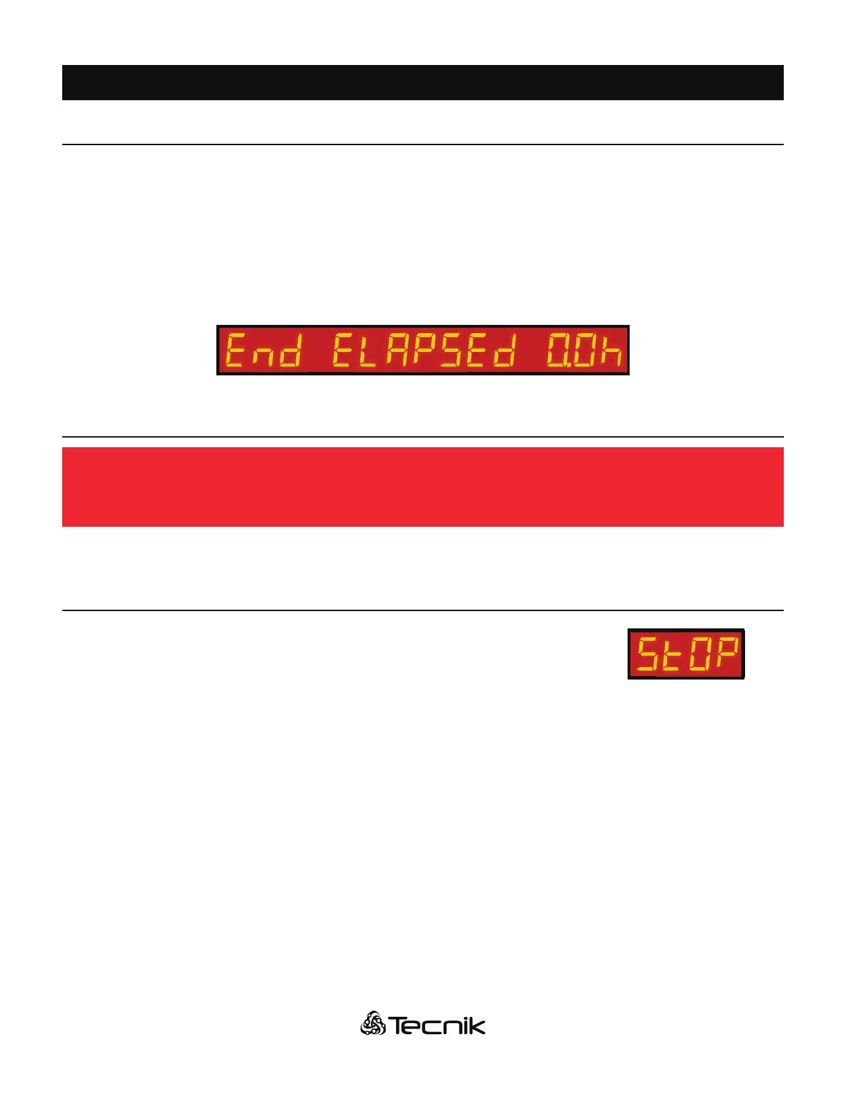 red button “MANUAL STOP” on the front panel. The display will show the message: