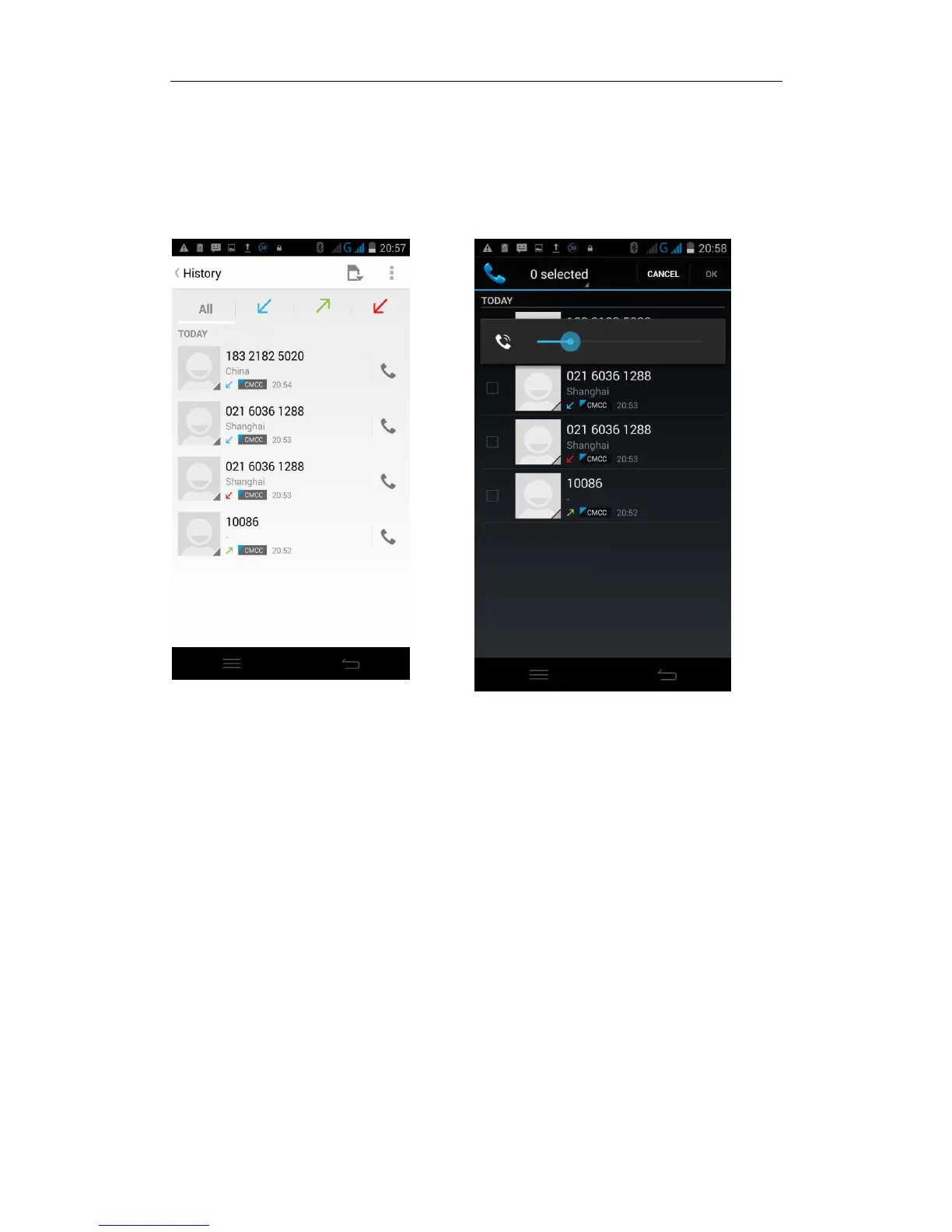 Enter the call log interface -- Click the menu button -- Select “delete” function --