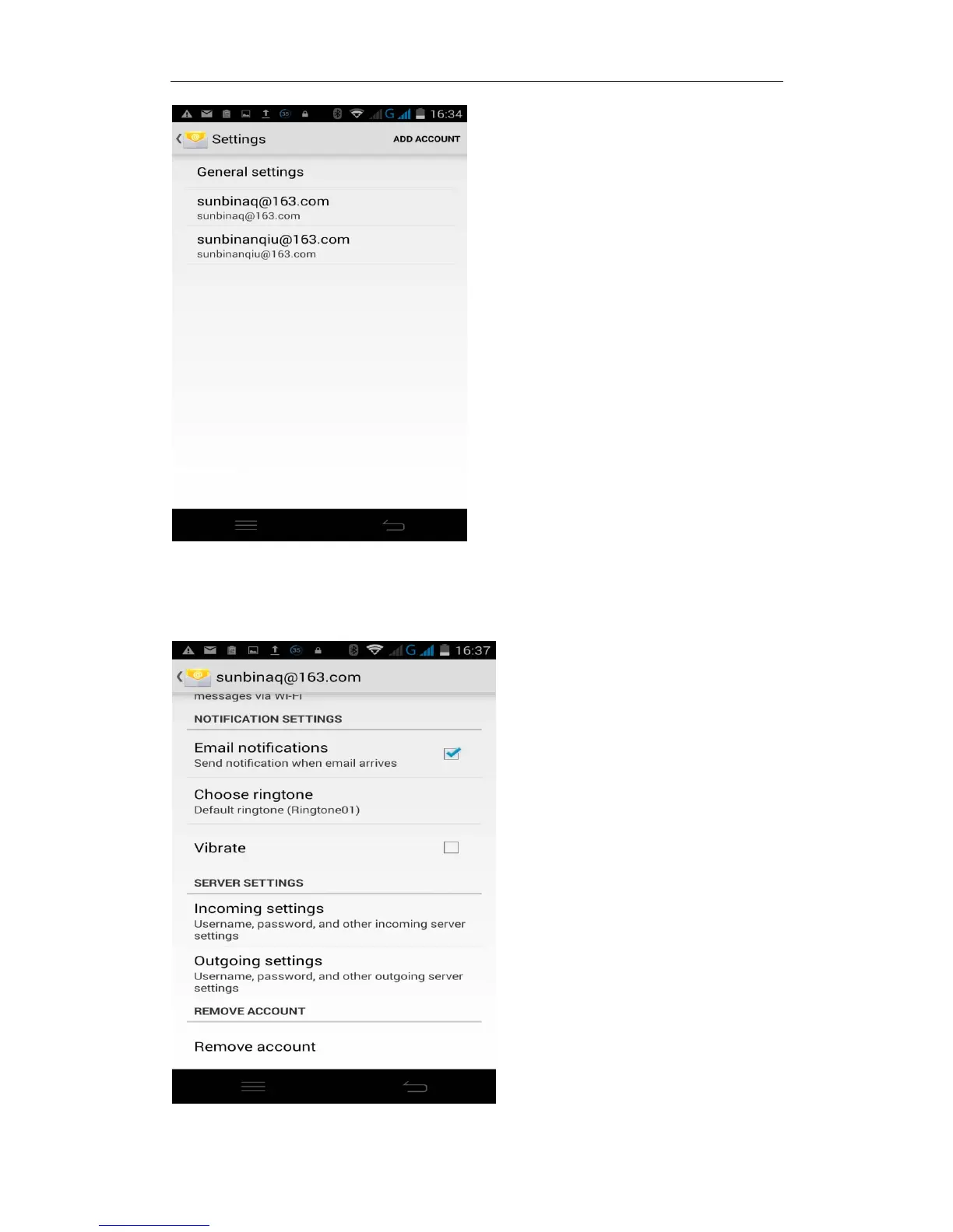 Enter the Program Group screen – Select "Email" application – Click the menu
